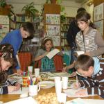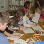 Na závěr programu přímo v knihovně byl připraven dokonalý hřeb. Samotní malí čtenáři se na chvíli ocitli v roli ilustrátorů. Na předem připravené plátno s namalovanou zcela prázdnou zahradou inspirovanou knihou „Zahrada“ Jiřího Trnky si vlastnoručně pastelkami nakreslili, co by za branou takové tajuplné a snové zahrady rádi našli. Ilustrace pak vystříhali a nalepili za její plot. Objevilo se tu od malinkatého Arabelina prstenu až po obrovského slona snad úplně všechno. Což je nezvratným důkazem toho, že i dnešní děti umí ještě snít a jejich fantazie prozatím neutržila šrámy způsobené rychlou moderní kybernetickou dobou.