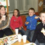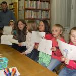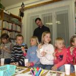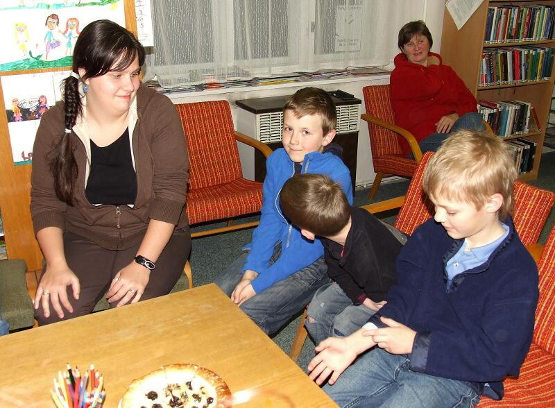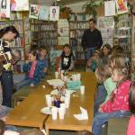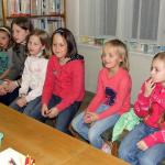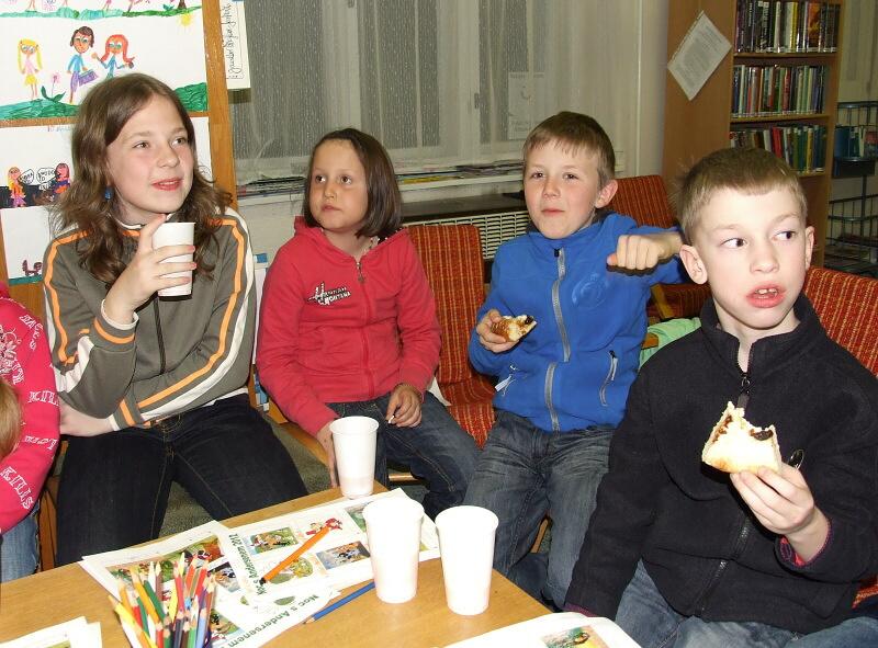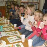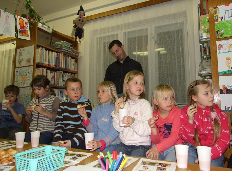 Ještě před rozloučením s budovou knihovny se malí čtenáři posilnili sladkým občerstvením, sborově pronesli úsměv kreslící slůvko „sýr“ při společném fotografování a také dostali malý dáreček – barevné fixy a tužku, aby si mohli kdykoliv „zailustrovat“ a také „kouzelnou záložku“. Jak to, že kouzelnou? I když čtenář zapomene, kde naposled v knize skončil, záložka mu přece vždycky správně napoví!
