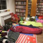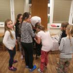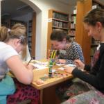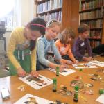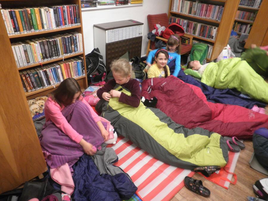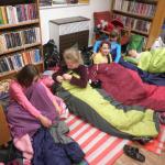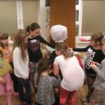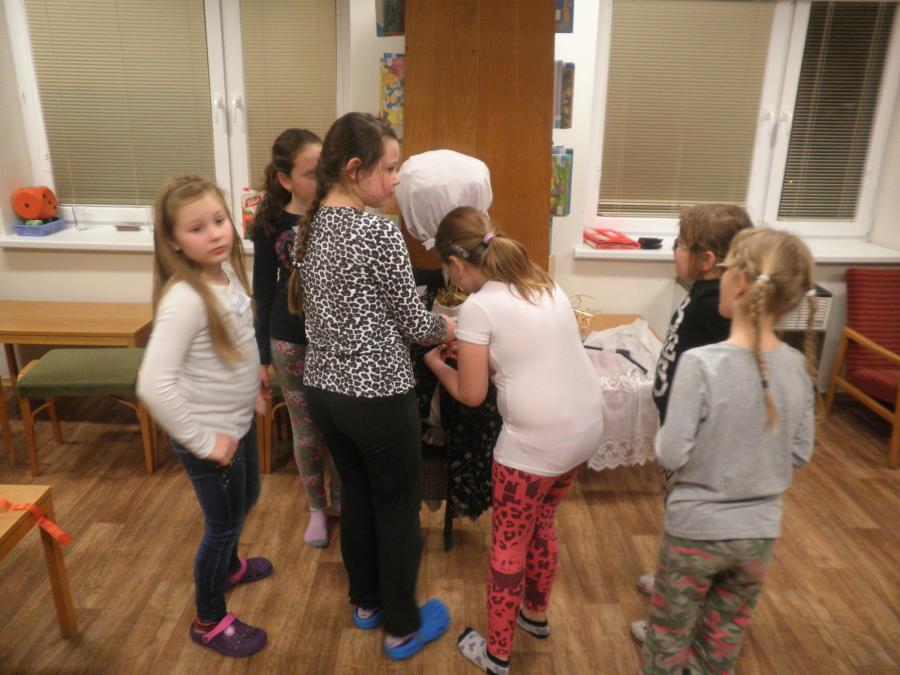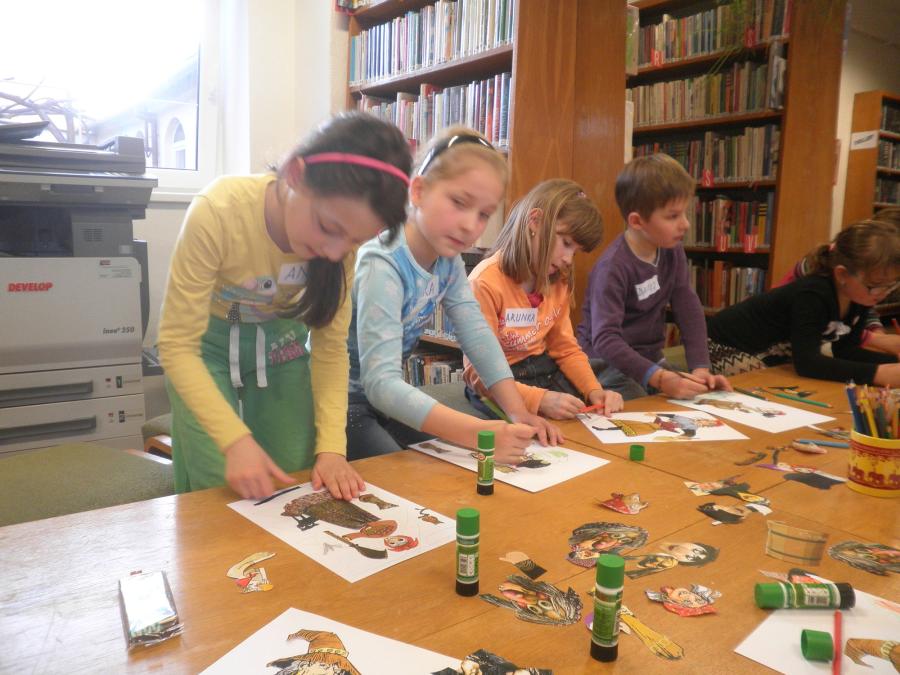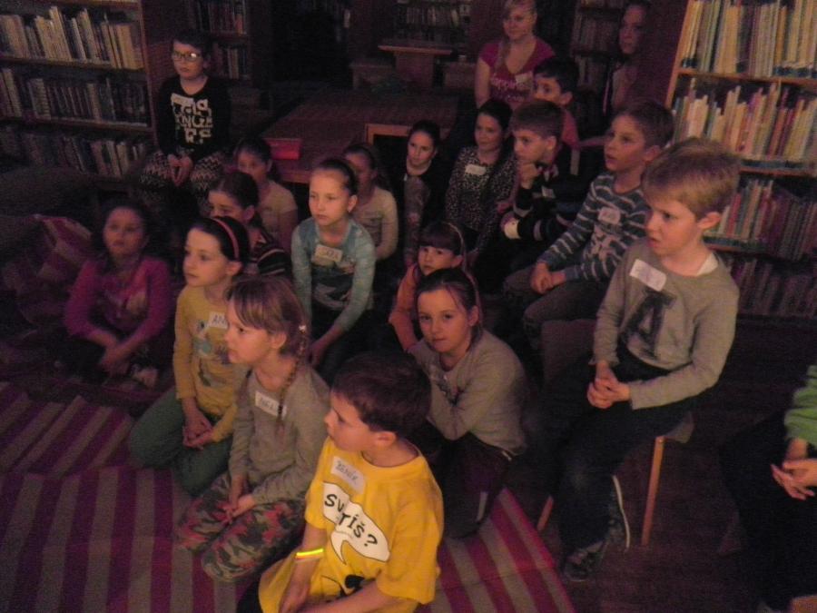 Děti se v průběhu odpoledne sešly v knihovně. Z 21 přihlášených dětí se dostavilo 19. Letošní nocování se neslo v duchu strašidel. Děti se formou her a malování seznámily s velmi početnou skupinou těchto bytostí. Během večera si měly možnost z vystřižených částí složit hezkou čarodějnici.