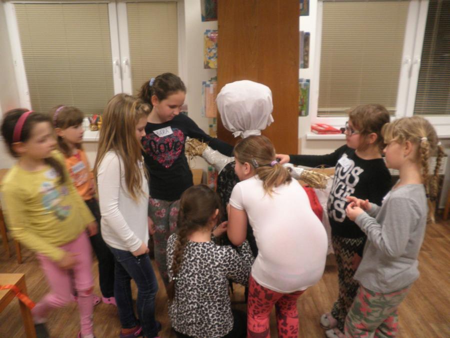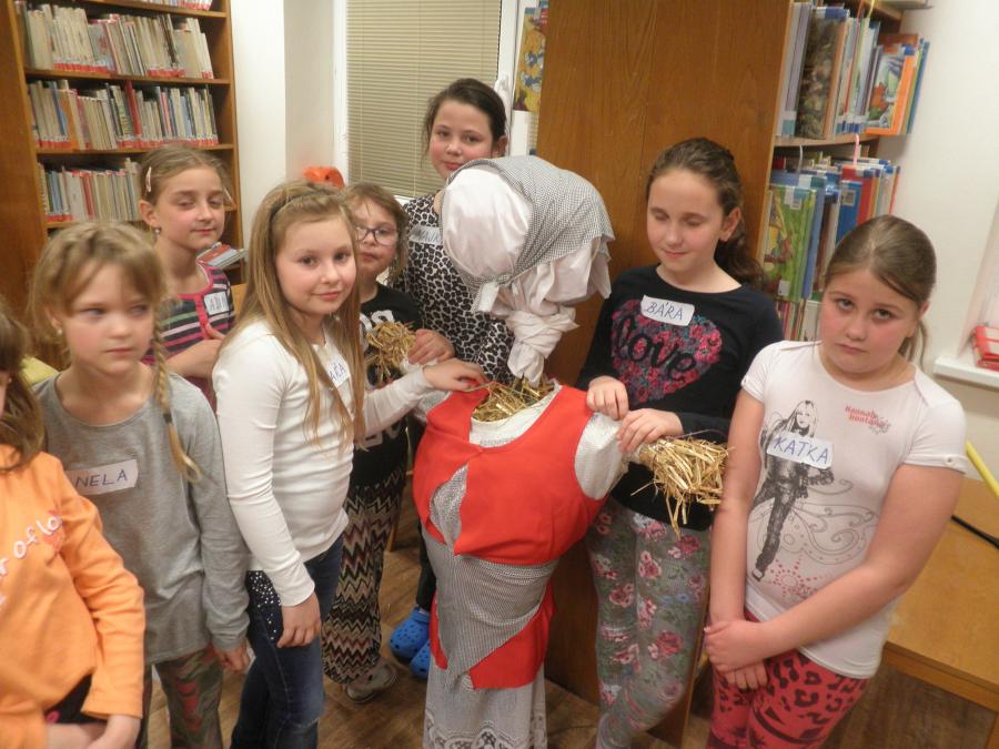 Paní Mgr. Dana Růžičková, vedoucí městské knihovny, připravila pestrý program. Jeho doplněním bylo i připomenutí si příchodu jara. Děti se seznámily s tradicí vynášení Morany. Slaměnou figurku si samy oblékly, připevnily jí korále z vyfouklých vajíček a "vynesli ji“.