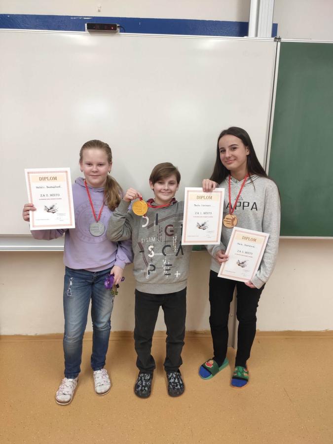 Výherci, kteří obsadili 1. místo a tím si zajistili postup do okresního kola, v němž budou reprezentovat naši školu, obdrželi diplom, medaili a blahopřání od členů poroty. Všichni zúčastnění recitátoři pak dostali pamětní list za účast a sladkosti.