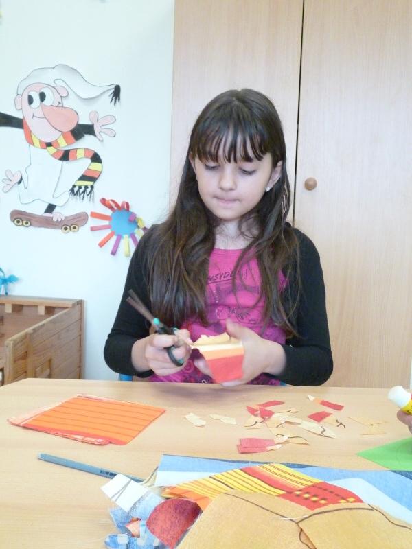 Ve školní družině při ZŠ Velké Pavlovice se s dětmi často věnujeme tvoření různých obrázků z tvrdých barevných papírů. Při této drobné činnosti, kdy stříháme, vytrháváme, mačkáme či lepíme papír, si pěkně procvičujeme hybnost rukou a prstů na ruce, tedy tzv. jemnou motoriku. Práce s papírem je pro nás tedy nejenom zábavou, při které si sami vytvoříme něco pěkného, ale také příležitostí k procvičování a zdokonalování jemné činnosti našich prstíků.