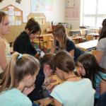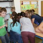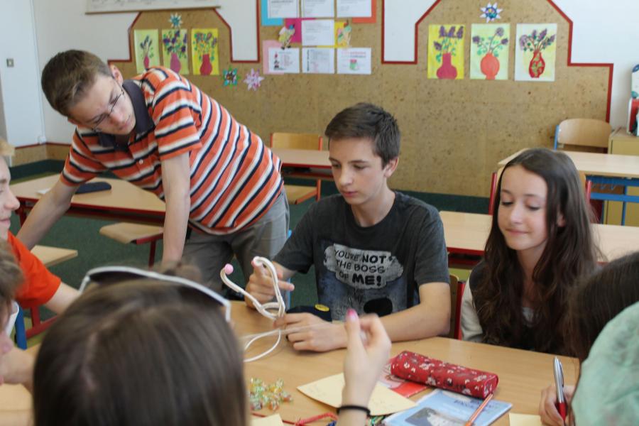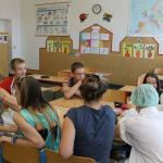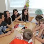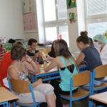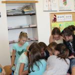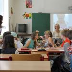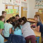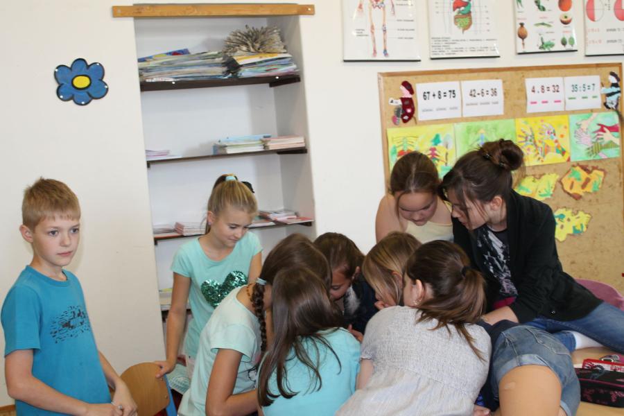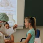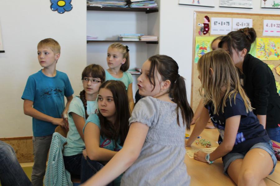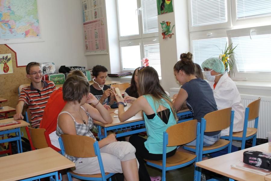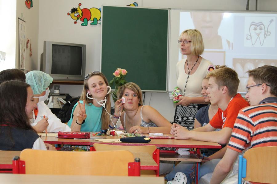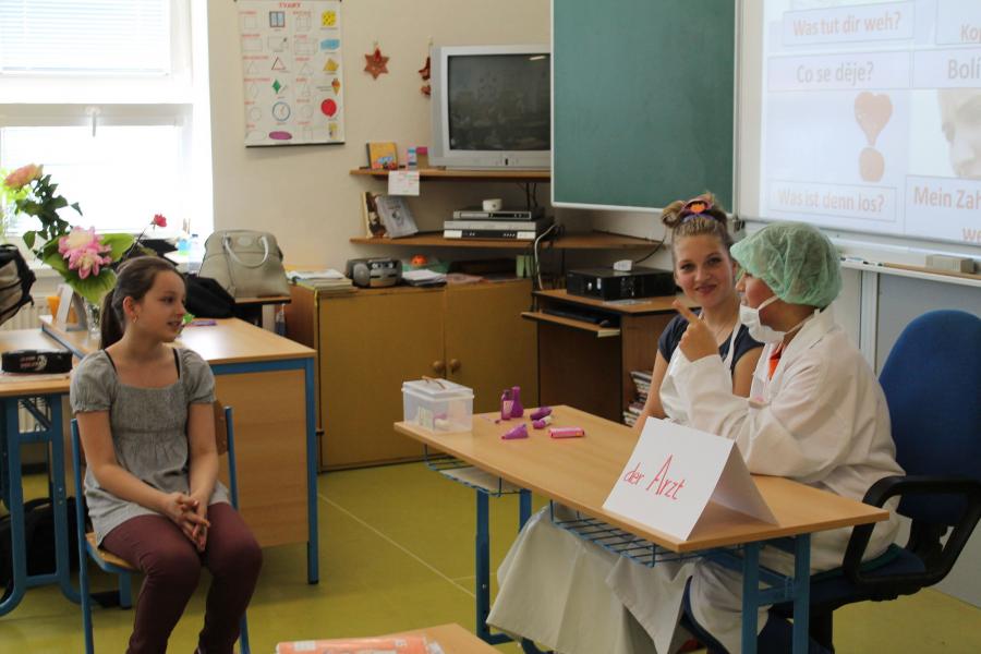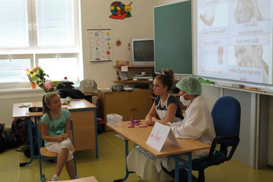 Dne 21. 5. 2014 proběhla v pořadí už druhá vědomostní soutěž v německém jazyce mezi pátou a osmou třídou. Žáci si připravili slovní zásobu týkající se částí lidského těla a utkali se spolu ve slovním testu, ve kterém tentokrát zvítězili o jeden bodík osmáci. Jako náhradu škody si osmáci připravili pro nemocné mladší spolužáky lékařské vyšetření. Všichni nemocní byli zachráněni a těší se už dobrému zdraví.