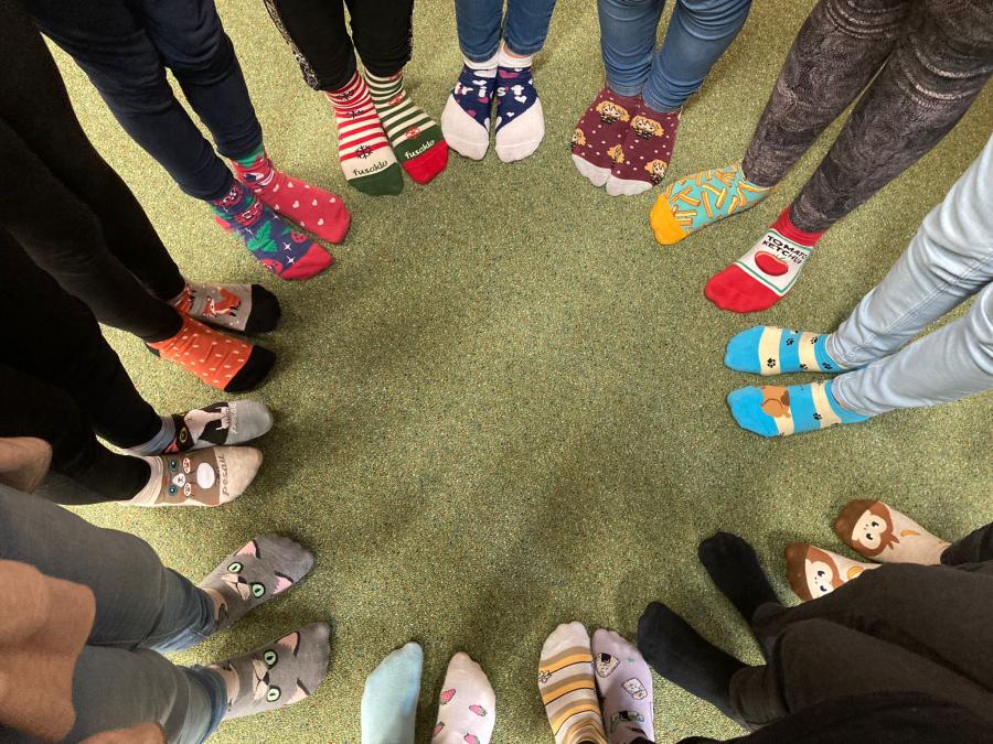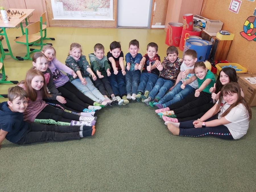 Dne 21. března se každoročně koná Ponožková výzva, která je spojována se Světovým dnem Downova syndromu. Jako zdůraznění lidské jedinečnosti se v tento den nosí dvě různé ponožky. Cílem je seznámit se s tím, co je to Downův syndrom a šíření povědomí o něm, aby se bouraly předsudky a tito lidé mohli žít plnohodnotný život jako my ostatní. Do výzvy jsme se připojili také s žáky na prvním stupni nejen rozdílnými ponožkami, ale i informacemi a povídáním o lidech s tímto postižením.