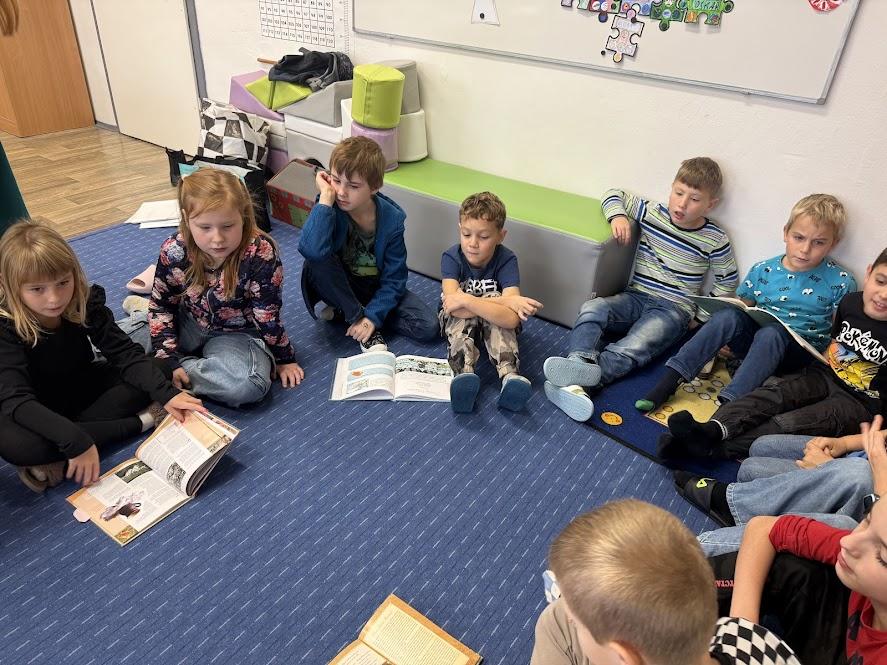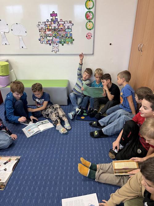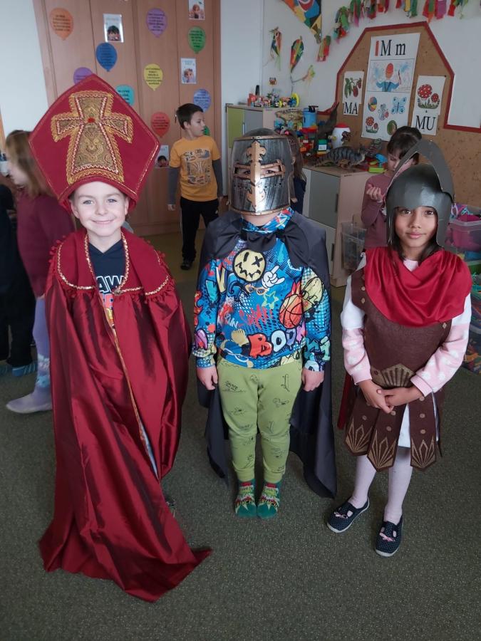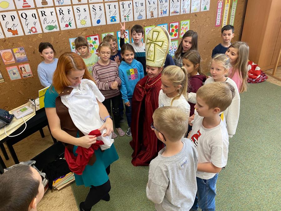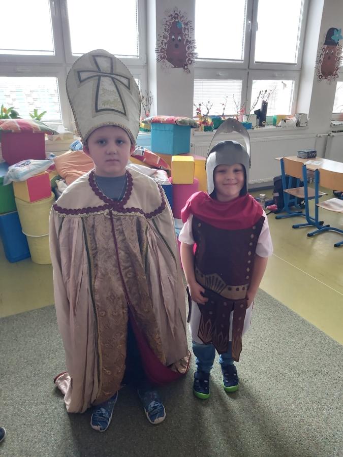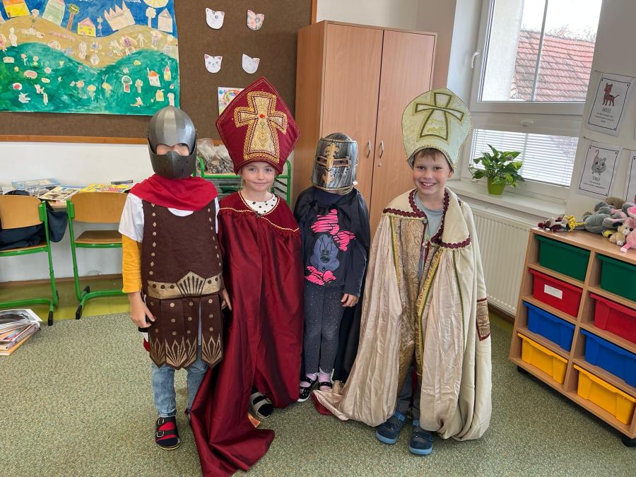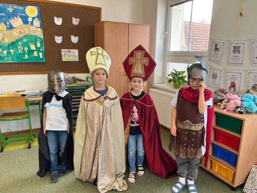 Proč přijíždí svatý Martin na bílém koni? Proč se peče svatomartinská husa, a nejen to se žáci prvních a druhých tříd dozvěděli v pondělí a v úterý při programu o svatém Martinovi, který si pro ně nachystala paní knihovnice Lucie Gawlová. Děti získaly hodně nových informací, které se vztahují ke svatému Martinu: kdo to byl, kdy žil, proč byl prohlášen za svatého, jaké dobré skutky dělal, zjistily, jaké pranostiky se vážou k tomuto podzimnímu dnu, měly možnost si vyzkoušet dobové kostýmy a plnily jednoduché úkoly. Bylo to moc příjemné ozvláštnění vyučování, děti ještě několik dní na nově získané vědomosti a zajímavosti vzpomínaly.