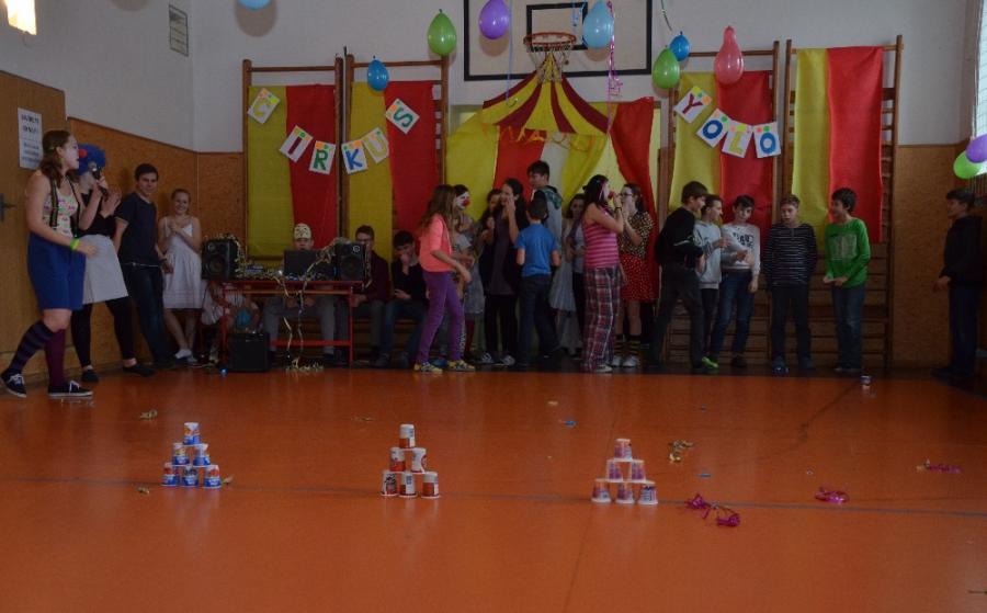 Tématem letošní diskotéky byl cirkus a tomu také odpovídaly dekorace a kostýmy. Pro první stupeň se diskotéka konala od 8 do 9.30 hodin, pro druhý od 10 do 12 hodin. V rámci diskotéky na 1. stupni byly také předány ceny nejlepším matematikům – výhercům matematické soutěže.