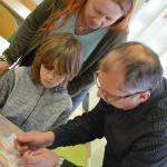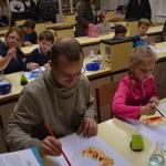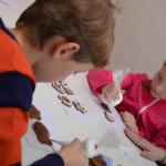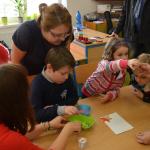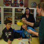 Na závěr tvoření dostaly děti v každé dílně do své kartičky razítko. S kartičkou plnou razítek se pak s rodiči vydaly do krásně vyzdobené školní jídelny, ve které na ně čekalo překvapení v podobě sladké odměny. Rodiče, babičky a dědečkové si v jídelně v klidu poseděli, napili se čaje a ochutnali výborné koláče, které jim upekly kuchařky školní jídelny.