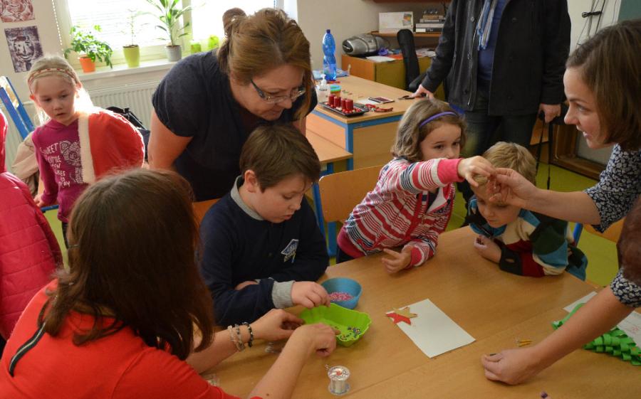 Již patnáct minut před druhou hodinou před školou postávaly hloučky dětí a rodičů, které netrpělivě čekaly, až se dveře školy otevřou. Protože se i letos Den otevřených dveří nesl  v duchu předvánočního tvoření, čekalo na děti mnoho dílniček, ve kterých si mohly vytvořit vánoční dekorace a drobné dárky.