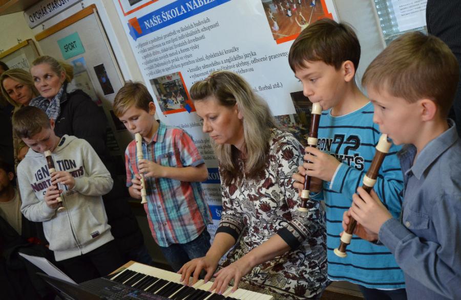 Doprovodný program byl také velmi bohatý. Rodiče si mohli prohlédnout všechny prostory základní školy. Zaujaly je krásně vyzdobené třídy i prostory školní družiny, ve kterých si děti pohrály a vytvořily drobné vánoční dekorace. Ve velké tělocvičně mohli zhlédnout badmintonový turnaj a v malé tělocvičně se svými gymnastickými sestavami pochlubila děvčata ze zájmového kroužku gymnastiky. Na schodech v budově 1. stupně si pak vyslechli koledy, které pro ně připravili žáci čtvrtých ročníků se svými učiteli.