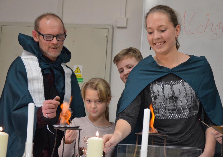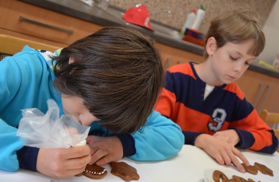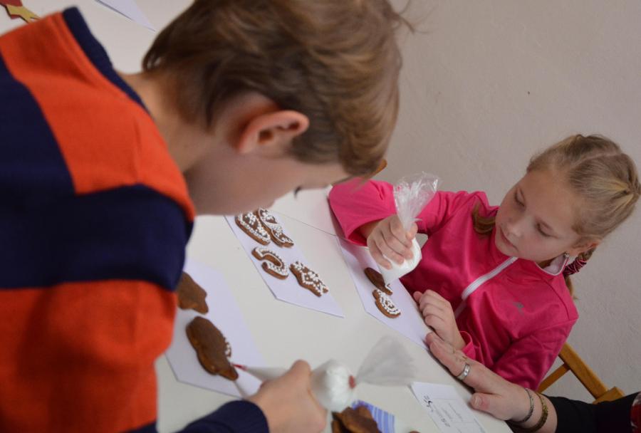 Po vstupu do školy dostaly děti papírovou kartičku, na níž byl vytištěn seznam dílniček, které mohly navštívit. Program v dílnách byl opravdu pestrý. Děti si mohly vyrobit krásné papírové hvězdičky, strašidelné čertíky, prostřihávané zelené vánoční stromečky, ozdobit cukrovou polevou perníčky, z chvojí a ozdob vytvořit vánoční svícny, namalovat hedvábný šáteček, udělat panáčka ze šišek, z korálků navléknout náhrdelník nebo navštívit alchymistickou dílnu.