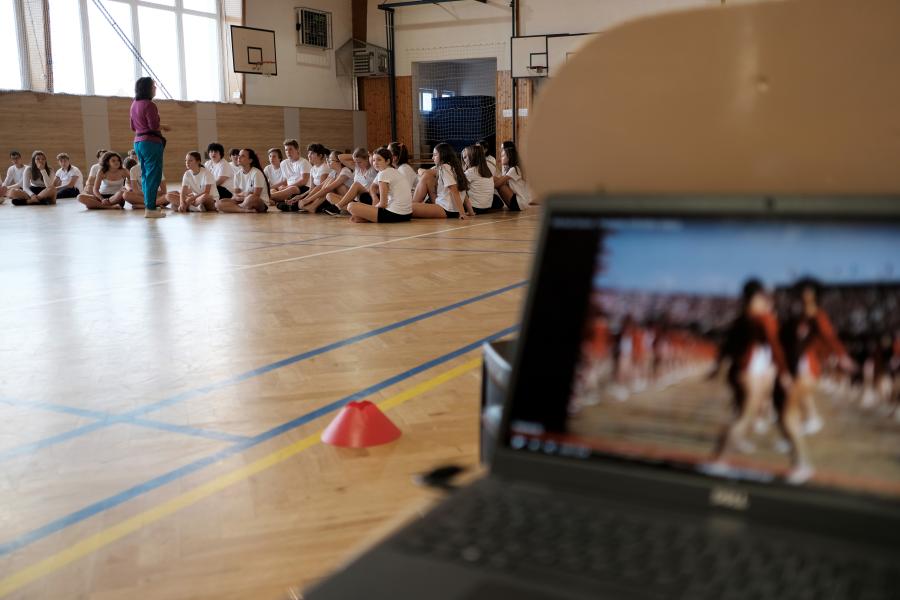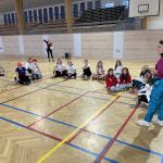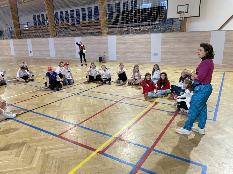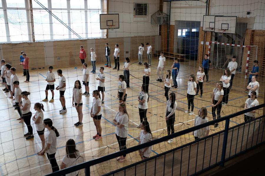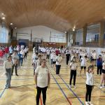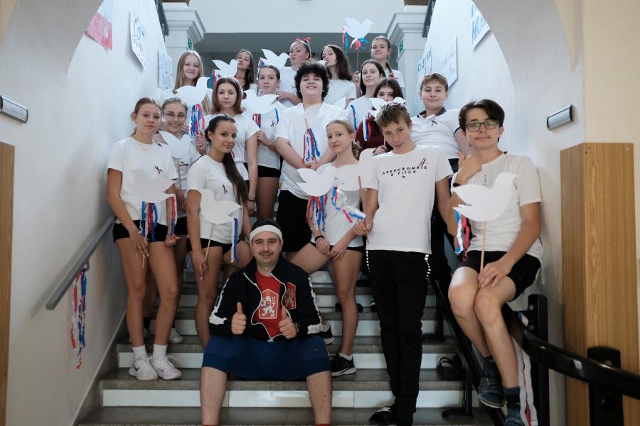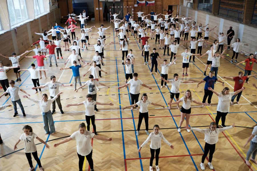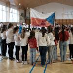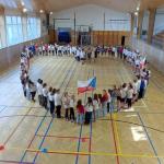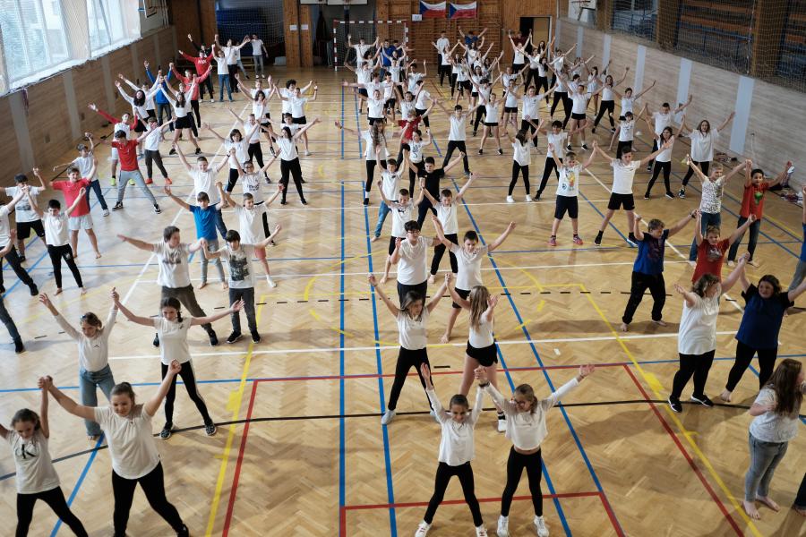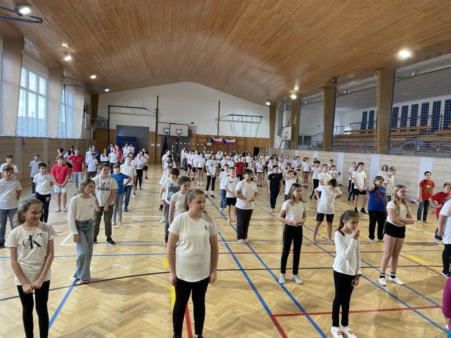 Pátou hodinu jsme se všechny třídy shromáždily v tělocvičně a zatančily naši choreografii. Paní zástupkyně a pan ředitel měli krátký proslov. Celou akci jsme zakončili seskupením do tvaru srdce, zazpíváním a předvedením našich výrobků. Nakonec jsme se všichni odebrali s radostí domů užít si prodloužený víkend.
