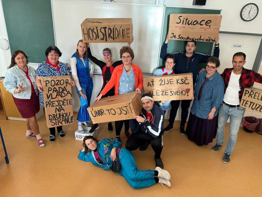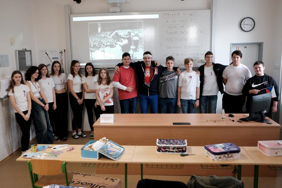 Dne 16.11. jsme si ve škole připomněli 17.11. 1989. První hodinu nám pan učitel vyprávěl o tom, jaká byla doba před revolucí a co k ní vlastně vedlo. Protože se sám zúčastnil revoluce v Olomouci, pověděl nám o jeho vlastních zkušenostech. Druhou hodinu jsme se inspirovali vyprávěním a fotografiemi pana učitele a vytvořili jsme krabice s hesly, kterými v Olomouci obestavěli komunistickou budovu. Třetí hodinu jsme se přemístili do zeměpisné učebny, kde nám něco dalšího pověděli pan učitel Pavel Hanzálek a paní učitelka Taťána Hanzálková. Podívali jsme se na toto období spíše z hudební stránky a potom jsme se naučili píseň “Jednou budem dál”. Čtvrtou hodinu jsme šli do tělocvičny, kde jsme si zopakovali choreografii na skladbu “Poupata” a paní učitelky nás seznámily, jak to bylo se sportem před převratem.