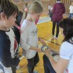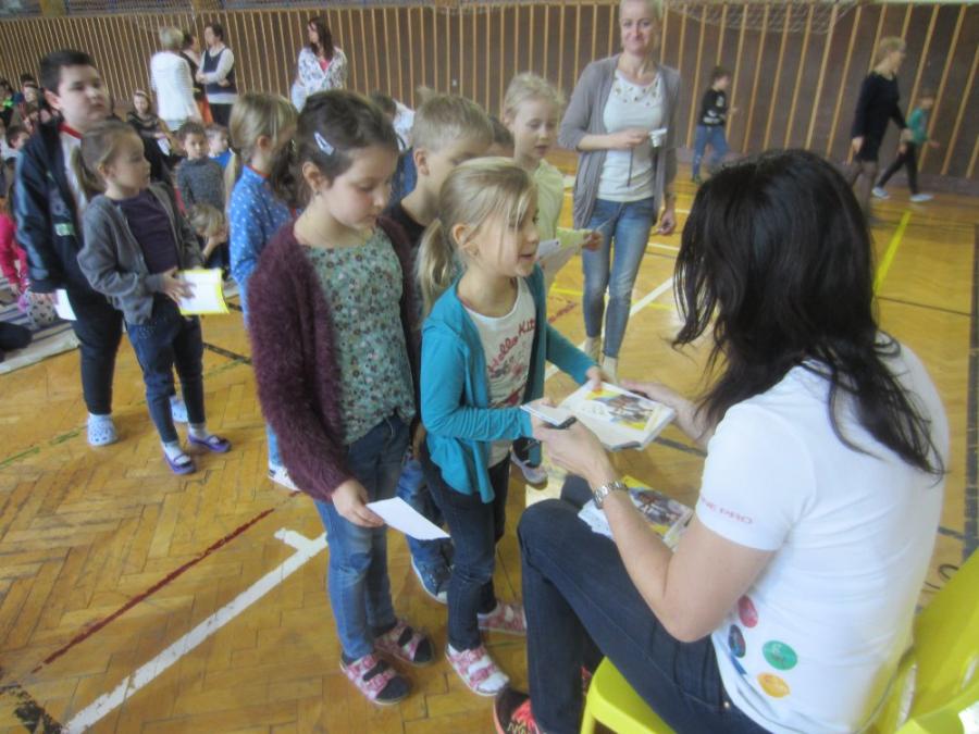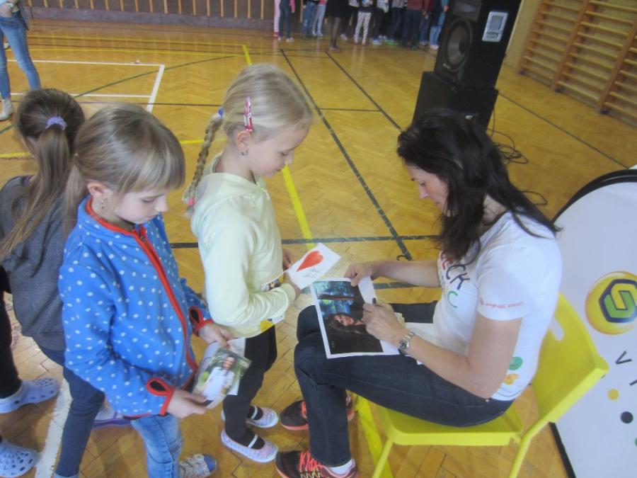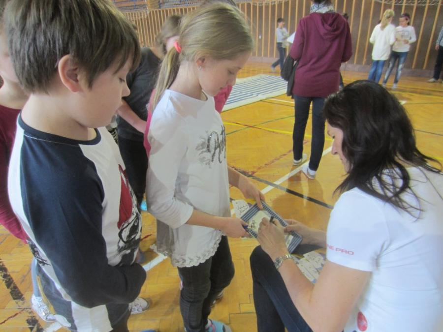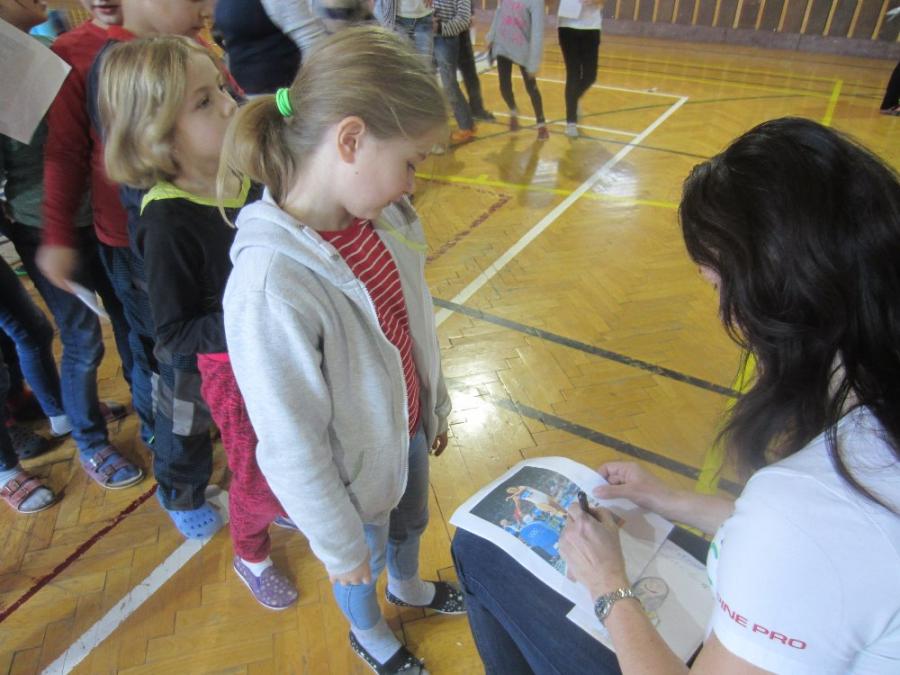 Vysoká rodačka z Karviné dětem přiblížila, jak se na základní škole dostala přes basketbal k atletice. Přivezla s sebou své medaile, dokonce i tu nejcennější z MS v Aténách, které si děti mohly „osahat“. Dále si mohly s mistryní světa také zasoutěžit ve skoku přes švihadlo a střelbě na basketbalový koš.