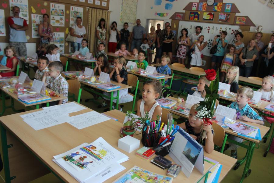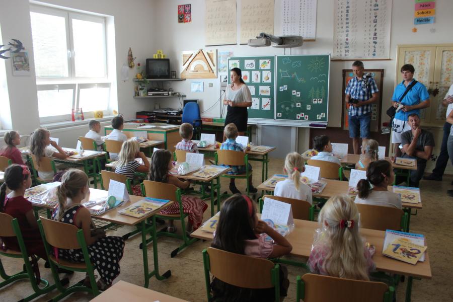 Máme 1. září a opět je tu den, kdy nám do školy poprvé nastoupili noví prvňáčci. Nejdříve jsme se sešli na slavnostním zahájení, kdy žáčky přivítali ředitel školy Mgr. Michal Rilák, starosta Velkých Pavlovic p. Jiří Otřel a pí ředitelka MŠ Jiřina Zigová.  Od spolku Domino děti dostaly kornout se sladkostmi. Pak si je třídní učitelky Mgr. Dagmar Šmídová a Mgr. Božena Zborovská za doprovodu rodičů odvedly do svých tříd. Tady na děti čekaly učebnice, balíček výtvarných potřeb a spousta informací. A zítra už je čeká opravdová škola.