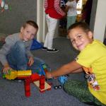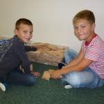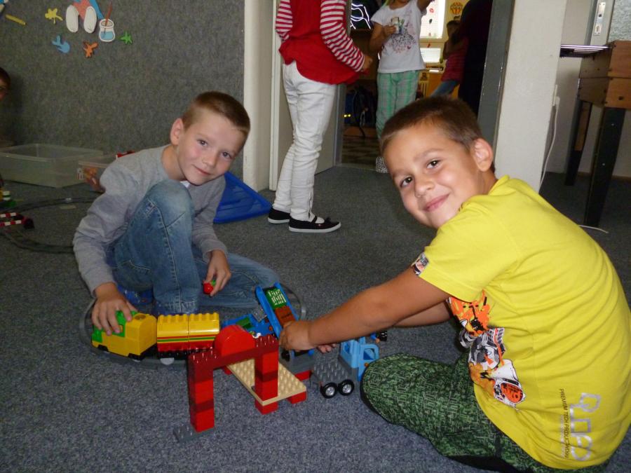 Následoval první společný oběd ve školní jídelně, kdy jsme si taktéž připomněli zásady hygieny a stolování. Další chvíle strávily děti volnou hrou v družince. Za necelou hodinku se pak k malým školáčkům připojili již otrlí „družinkoví harcovníci“ – starší děti, které k nám již v předchozích letech chodily a které nám zůstaly věrny a budou s námi i v letošním školním roce prožívat volný čas po vyučování.