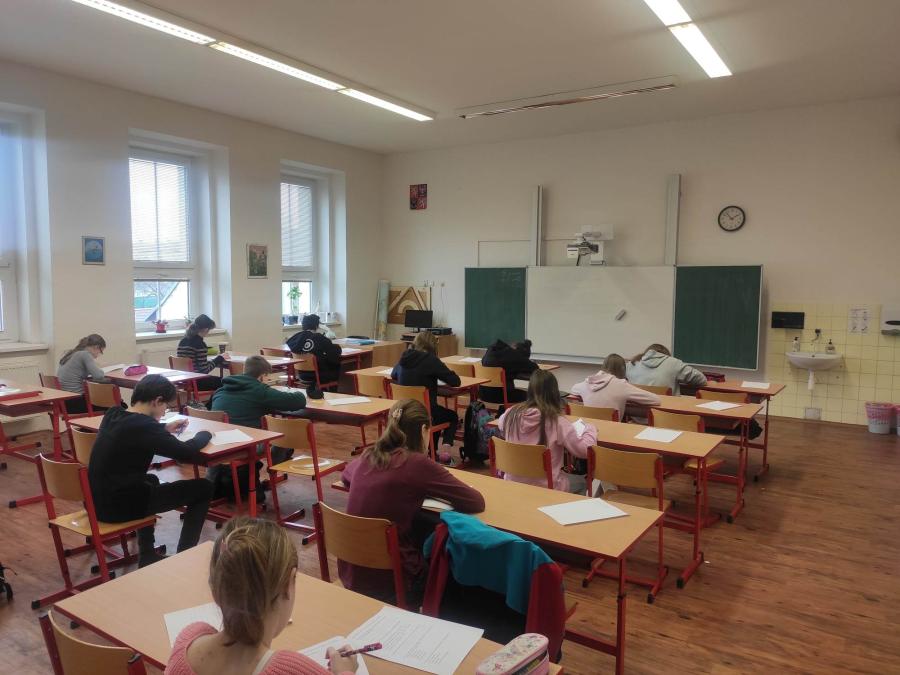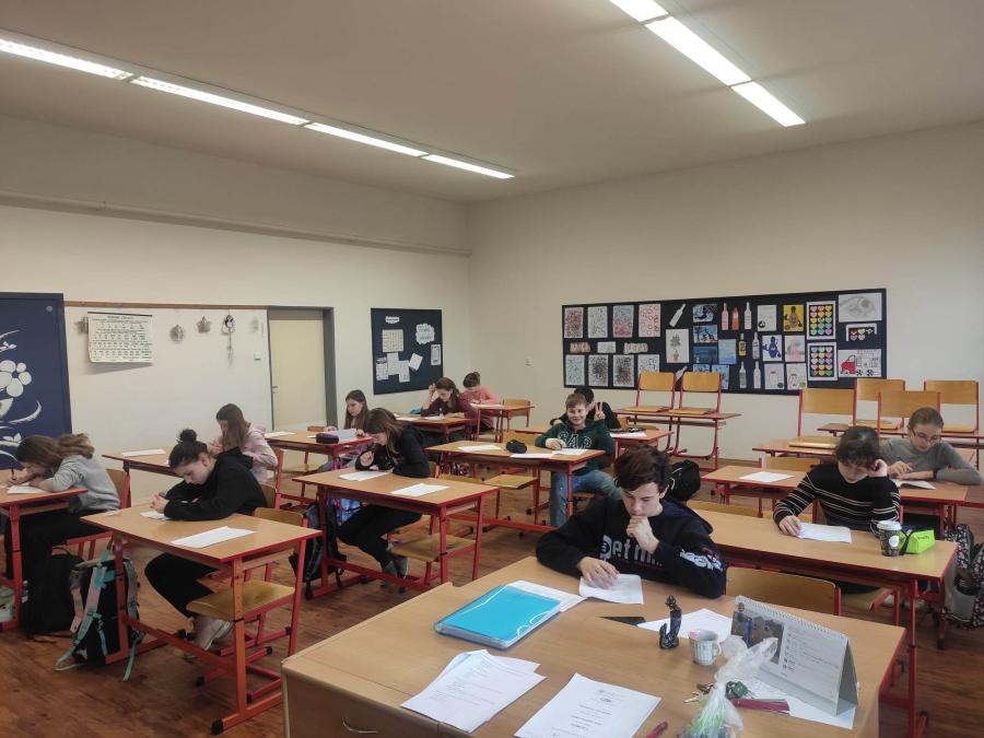 Součástí školního kola soutěže je test, ve kterém si mohli žáci ověřit své znalosti především na úrovni populací, ekosystémů i celých krajin a rovnováhu mezi nimi i spolupráci mezi organismy.