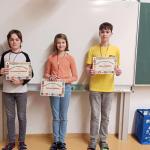 Po vyhodnocení výsledků byli vyhlášeni tři nejlepší soutěžící, kteří si svými výkony a patřičným počtem bodů zajistili postup do okresního kola. Tito žáci nás budou reprezentovat a my jim držíme palce, aby uspěli i v další fázi soutěže.
