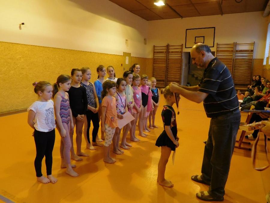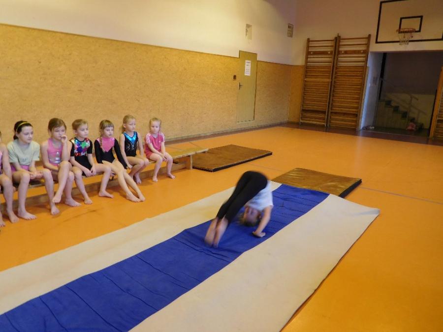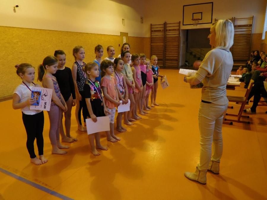 Dne 1. 2. 2018, den před jarními prázdninami, se 15 děvčat z oddílu sportovní gymnastiky zúčastnilo školní olympiády ve Sportovní gymnastice. Gymnastky byly rozděleny do dvou věkových kategorií 1. a 2. třída a 3. – 5. třída. Cvičily volnou sestavu na prostných a lavičce.