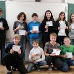 Protože 9. ročníky měly v daný den testování Scio z matematiky, účastnili se soutěže jen tři borci: Elena Cvrčková, Teodor Stávek a Vilemína Osičková. Nutno dodat, že Elena by se s 12body (max 15 b.) propočítala do okresního kola. Krásný výsledek!