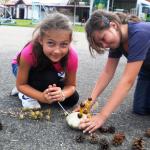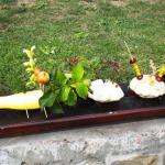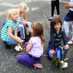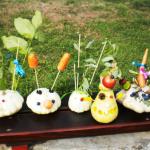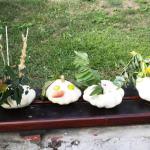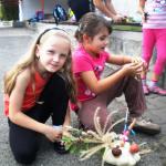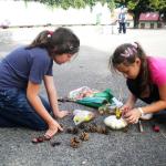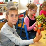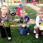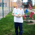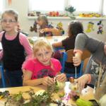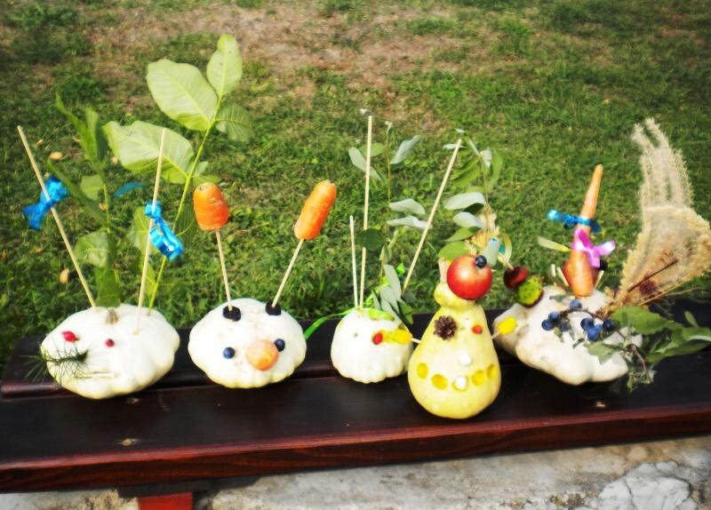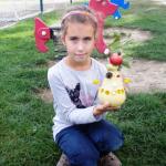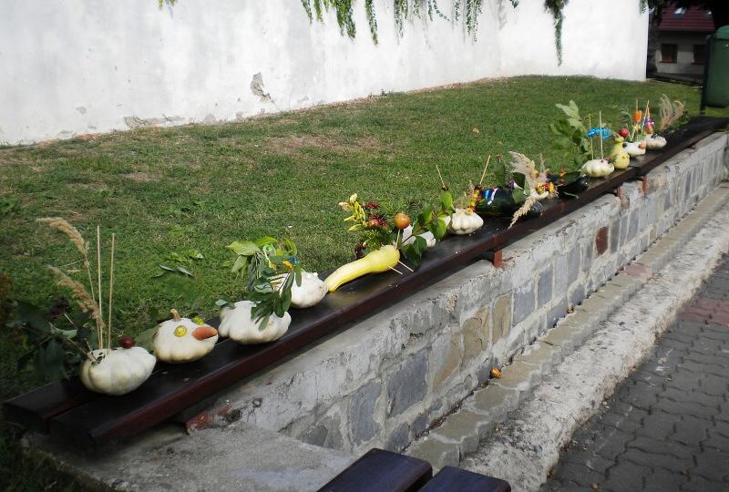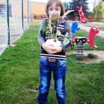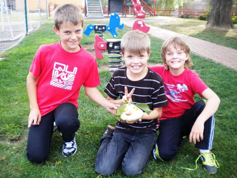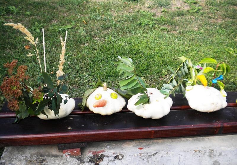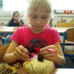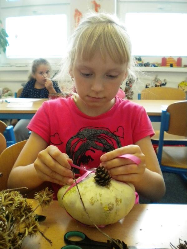 Jako základ pro „podzimníčka „ posloužily malé bílé patizony, které nám ze své zahrádky darovala a až na hřiště přivezla paní Střítecká, za což jí moc děkujeme. Děti se ve skupinkách pustily do tvoření. Pomocnou rukou nám byla i maminka Verunky Ježkové, která pomohla nejenom své dcerce vykouzlit hezkého strašáka, ale také neváhala pomoci ostatním dětem. Zhotovenými „podzimníčky" jsme ozdobili parčík před školou.