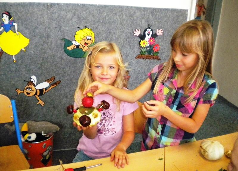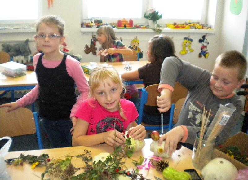 Podzimní příroda láká svými pestrými barvičkami a rozmanitou škálou plodů k nejrůznějším tvůrčím činnostem. I my ve školní družině jsme využili tohoto bohatství a s dětmi jsme se pustili do výroby podzimních strašáčků. Teplé slunečné počasí nám dovolilo tvořit na čerstvém vzduchu, a tak na hřišti za „kostelem" přímo před zraky kolemjdoucích vznikali pod rukama družinkových dětí podzimní strašáci.