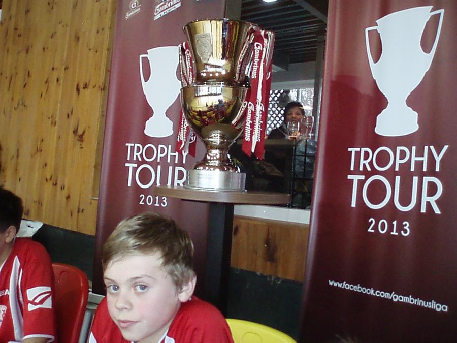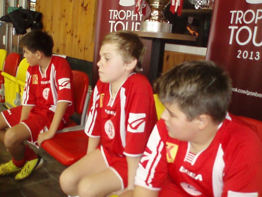 se přišli na své budoucí nástupce podívat a povzbudit je. Konala se i malá autogramiáda. Manager prvoligového týmu přivezl s sebou i pohár Gambrinus ligy, který nyní putuje po jednotlivých týmech extraligy.Naši žáci mohli před ním zapózovat i vyfotit se.
