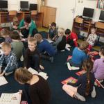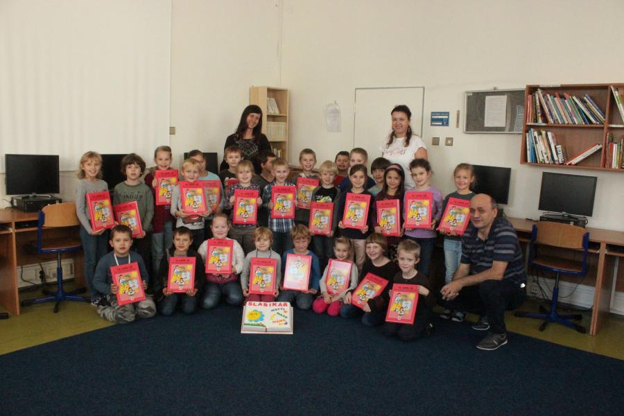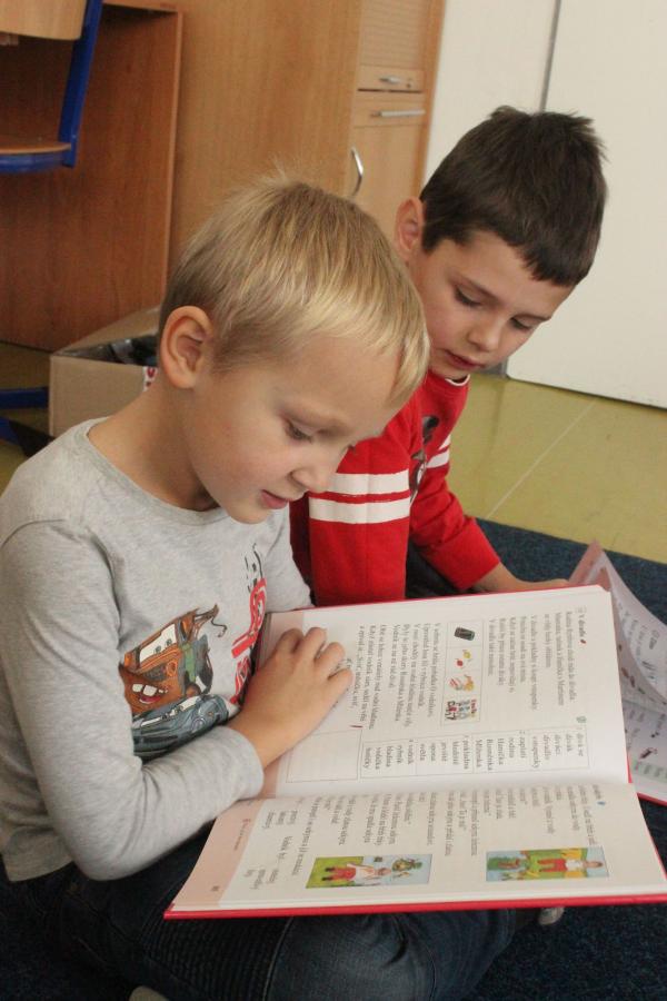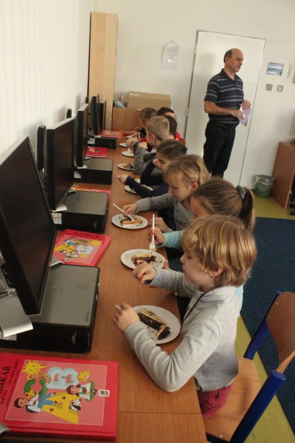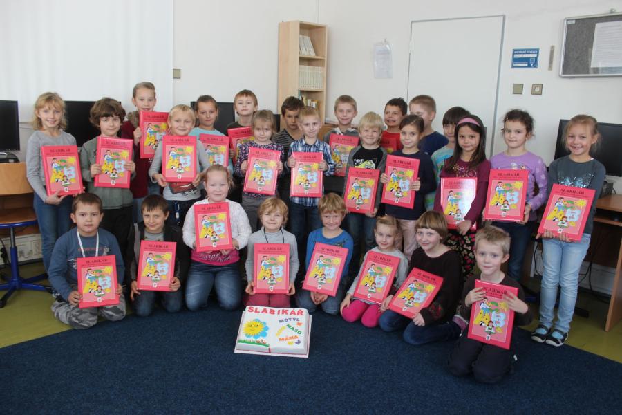 Včera byl pro prvňáčky významný den. Minulý týden dokončili učivo Živé abecedy a mohly jim být předány Slabikáře. Tato slavnostní událost proběhla za přítomnosti pana ředitele Mgr. Riláka a třídních učitelek. Žákům jsme tento okamžik zpříjemnili krásným dortem ve tvaru Slabikáře.