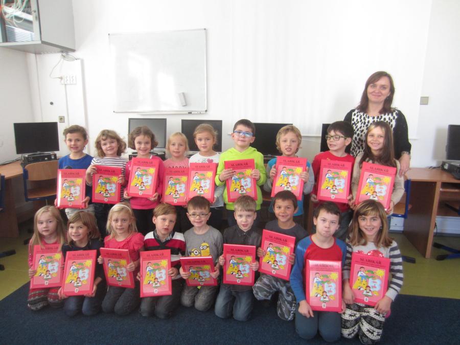 Děti musely nejdříve dokázat, že umí písmena nejen číst a psát, ale i skládat z nich slabiky a slova. Všichni žáci uměli na jedničku a zasloužili si překvapení v podobě krásného dortu a Slabikáře.