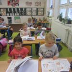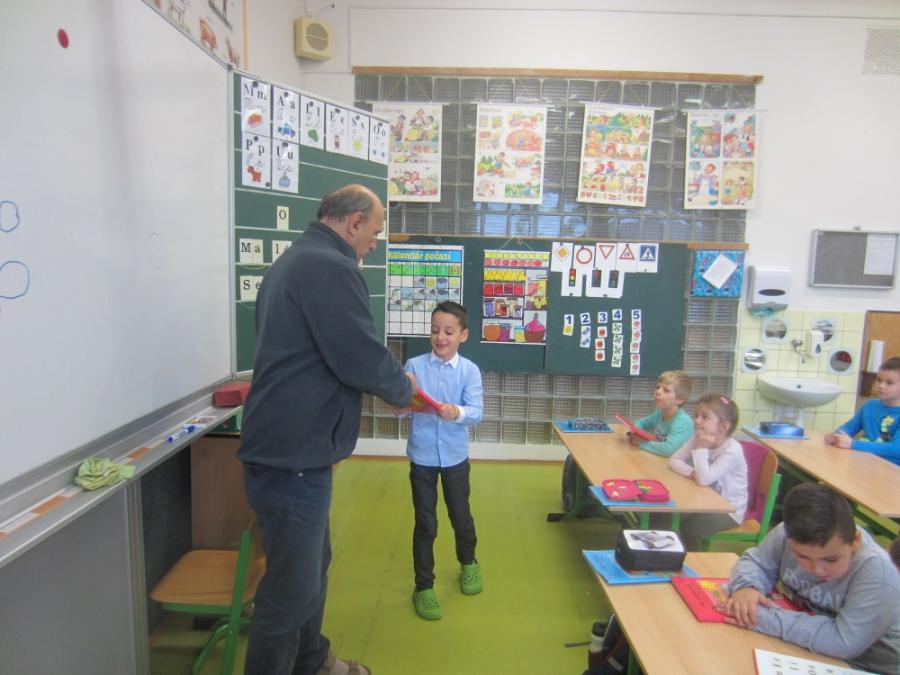 Děti předvedly, že umí písmena nejen číst, psát, ale i skládat slova a krátké věty. Hrály si s obrázky, kartami, zpívaly, vyvolávaly jeden druhého a vzájemně se hodnotily. Na závěr čekalo děti překvapení v podobě dortu, který upekly maminky. Patří jim tímto velké poděkování. Všechny děti odcházely s úsměvem a se svou první „velkou“ knihou – Slabikářem.