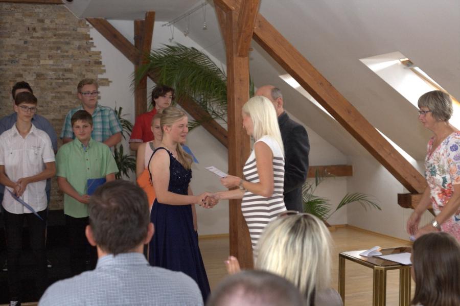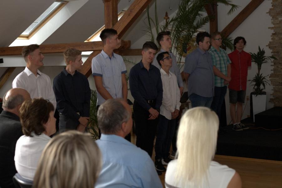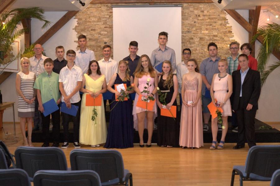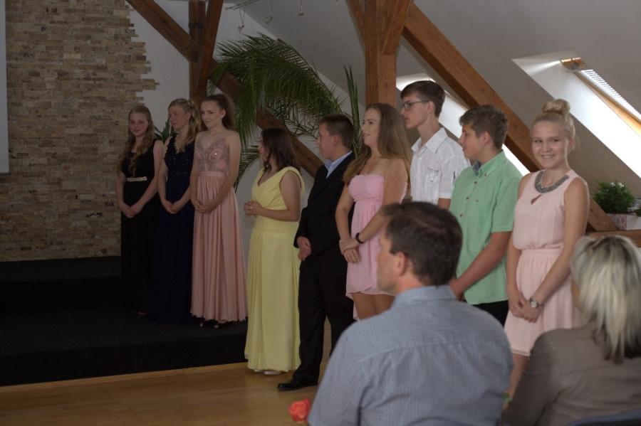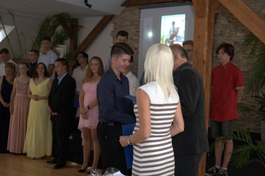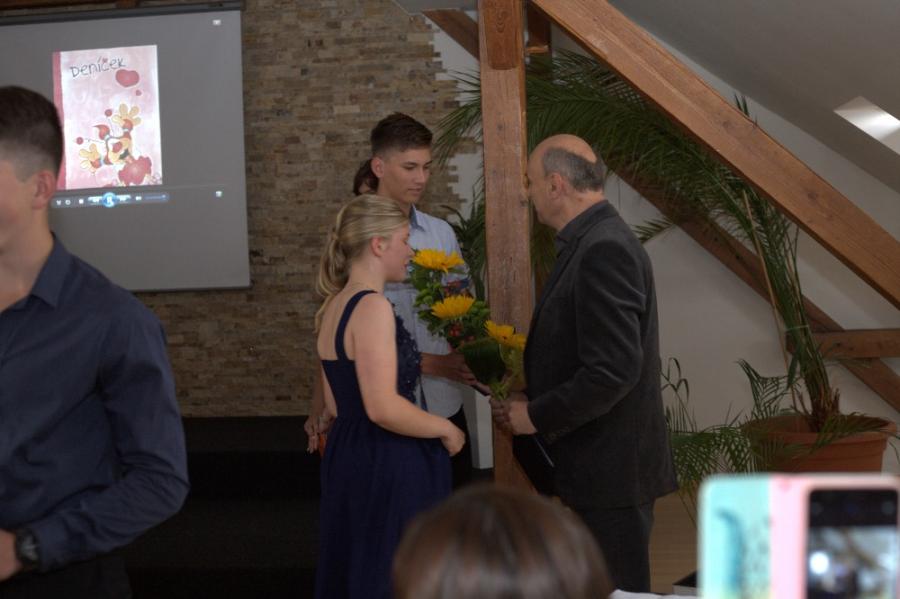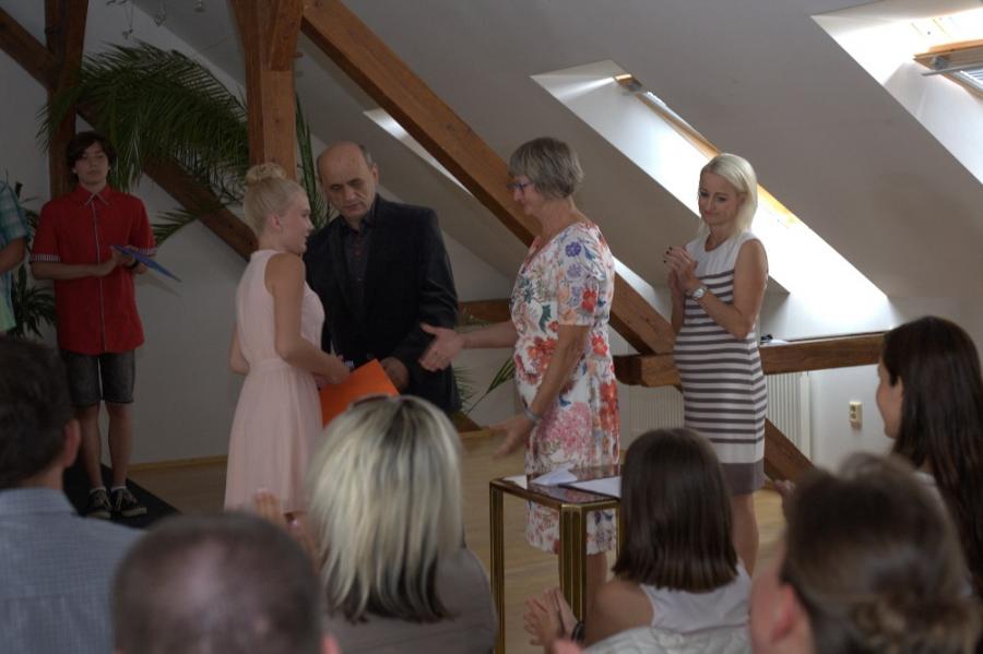 Slavnostní rozloučení a předání vysvědčení proběhlo na Městském úřadě za přítomnosti pana starosty, pana ředitele ZŠ Velké Pavlovice, ZŠ Němčičky, učitelů a v neposlední řadě rodinných příslušníků.