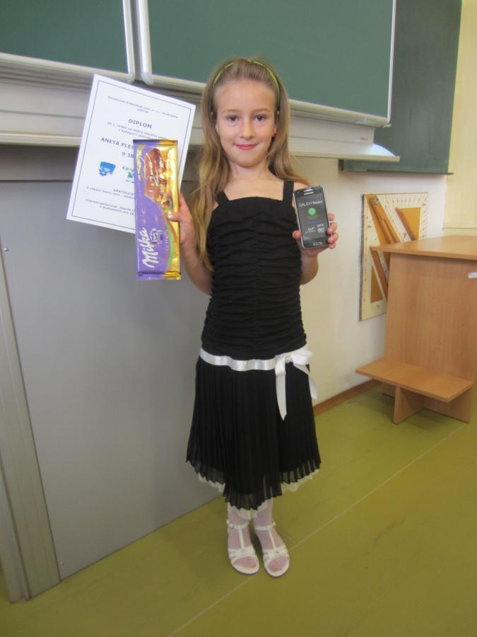1. místo Aneta Pleskačová z 2.A za nejlepšího sběrače, která odevzdala neuvěřitelných 9 680 kg starého papíru.