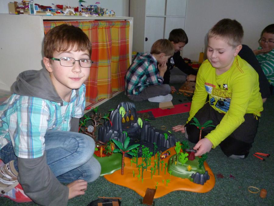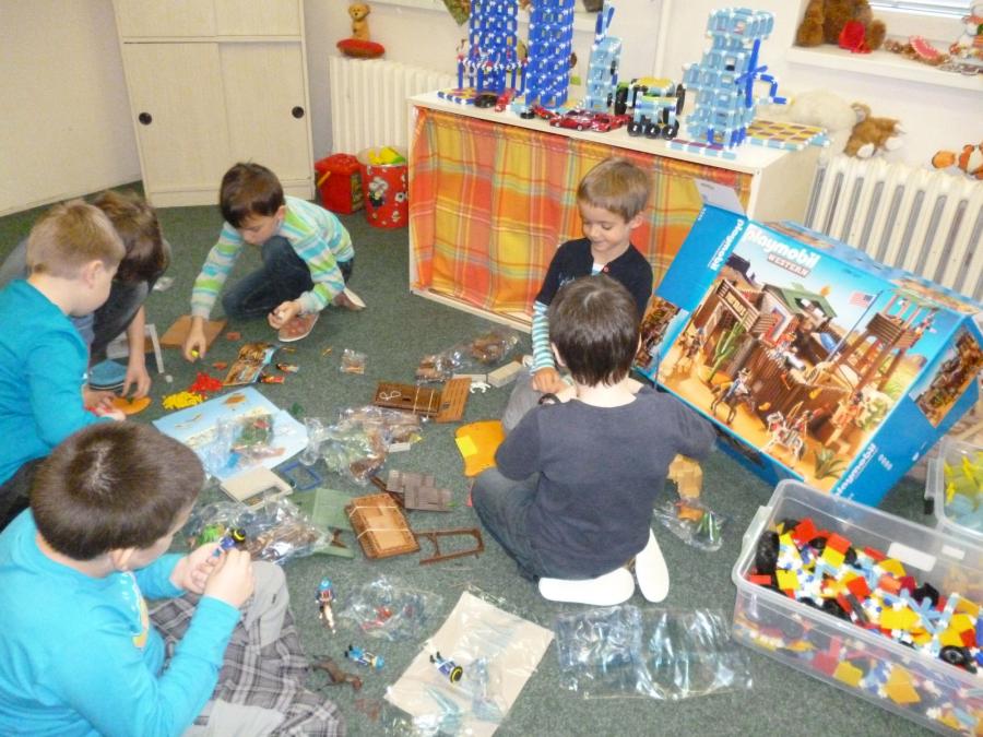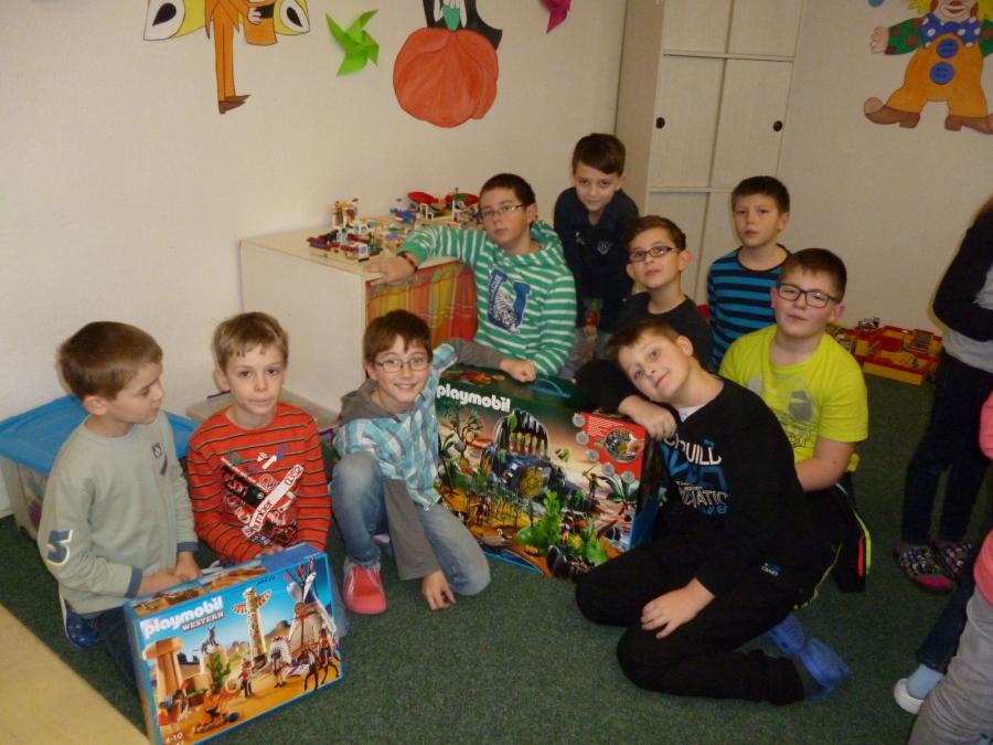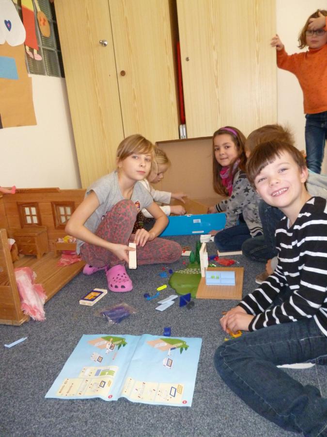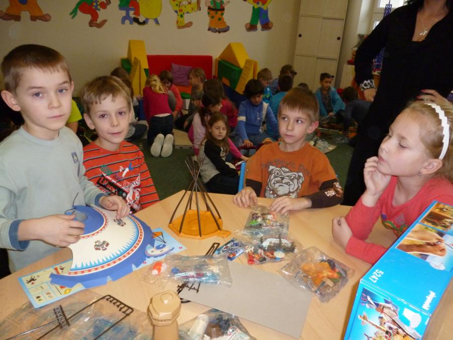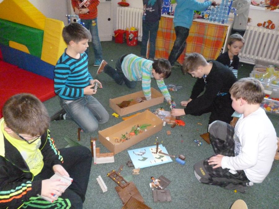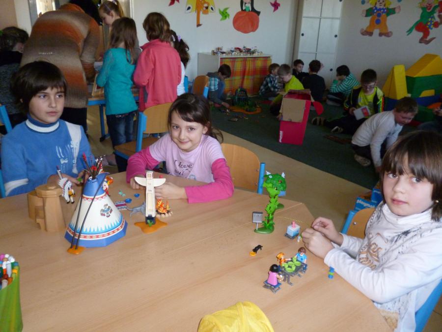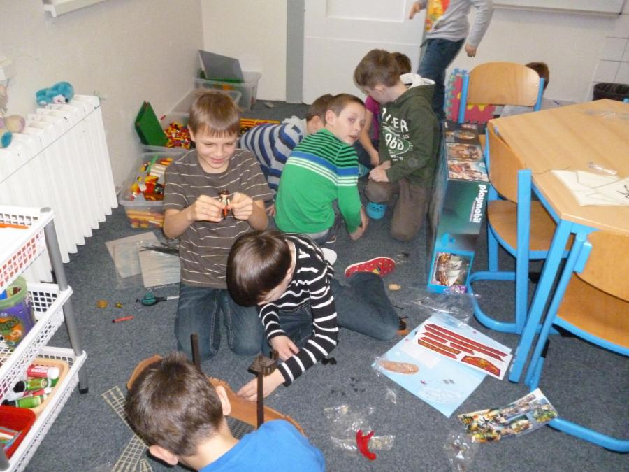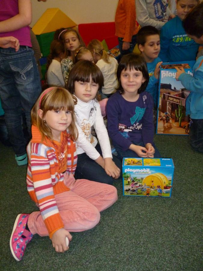 Po vánočních prázdninách jsme pod naším družinkovým stromečkem našli krásné překvapení – veliké stavebnice „Playmobil“ pro děvčata i kluky. Celý další týden jsme neúnavně podle plánků stavěli