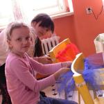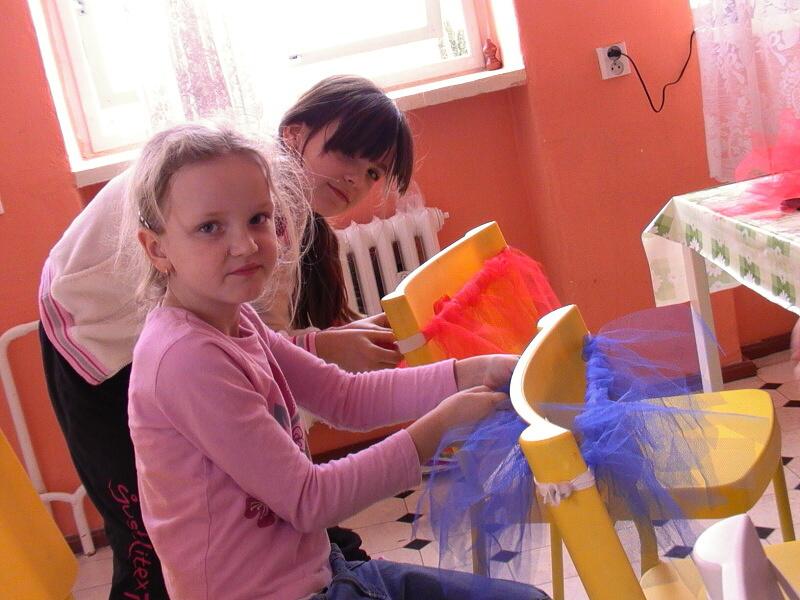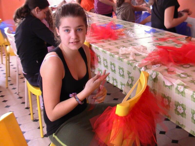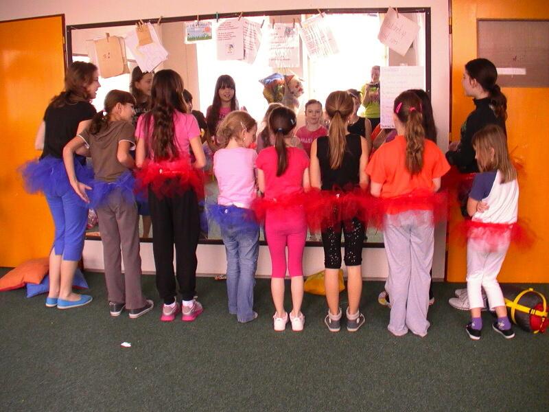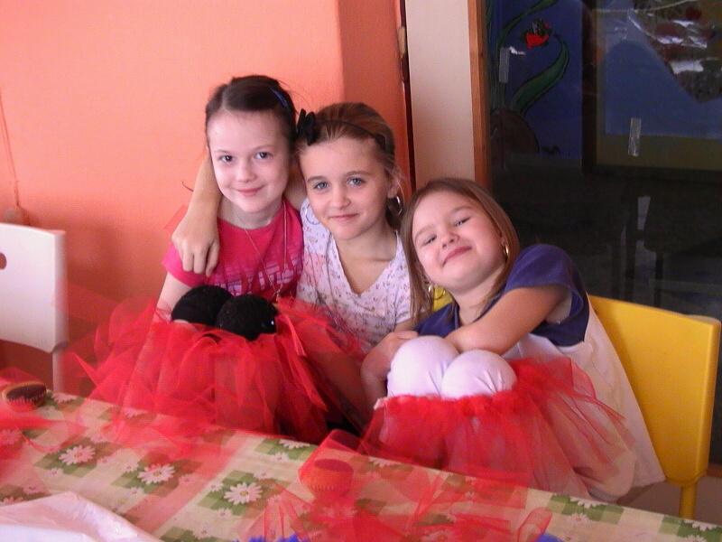 Celé dopoledne bylo zasvěcené výrobě tanečního kostýmu, konkrétně, výrobě tylové sukýnky. Zprvu se to zdálo jako nemožný úkol, aby byly všechny sukýnky hotové vůbec do nejbližšího vystoupení a ne za pár hodin, ale jakmile se do toho všichni dostali, tak to šlo samo a i nejmladší účastnice všechno hravě zvládly.