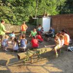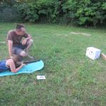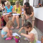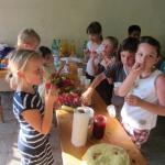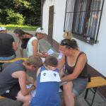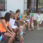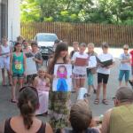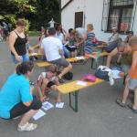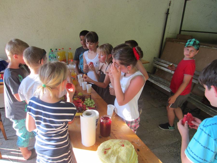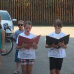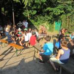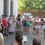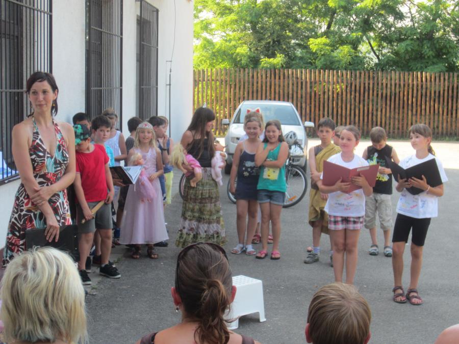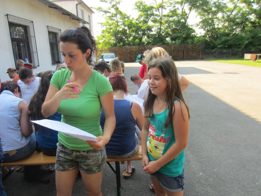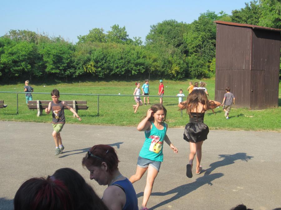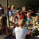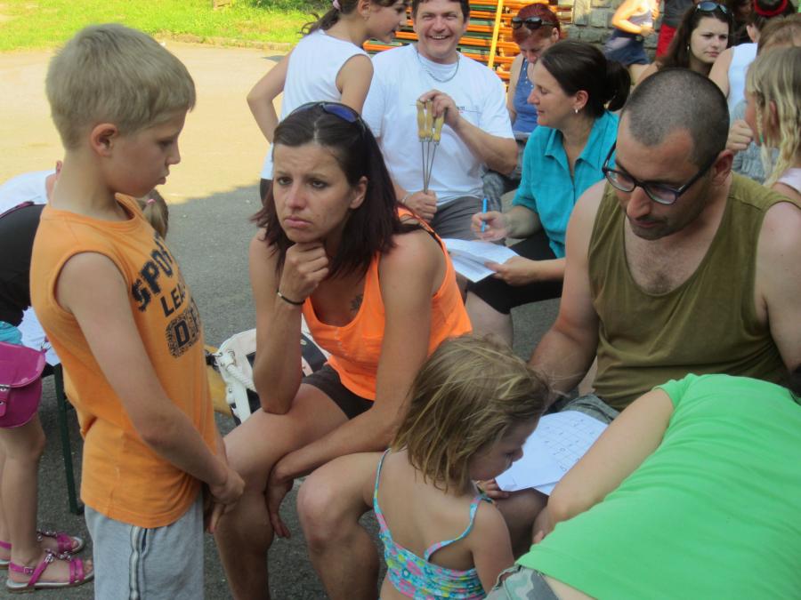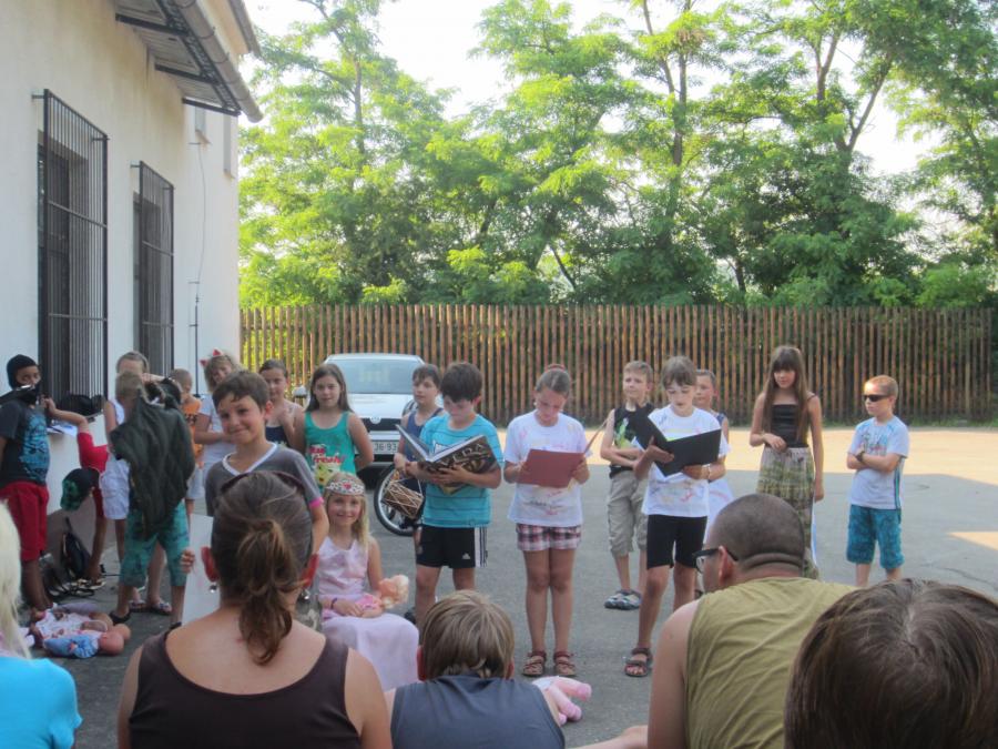 Už dlouho jsme si plánovali táborák dětí a jejich rodičů, který jsme nakonec uspořádali 20. června ve Velkých Pavlovicích u myslivny. Žáci si pro rodiče v pracovních činnostech vyrobili pozvánky s programem, kde jedním z bodů bylo divadlo. Ve vlastivědě se totiž nadchli učivem o Václavu II. a Václavu III., proto jsme společně zpracovali do scénáře právě toto téma. Děti hru obohatily především o vtipné momenty, vytvořili si a přinesli vlastní rekvizity, rozdělili role a pečlivě a s nadšením zkoušeli hrát. Jako premiéru představení zahráli prvňákům a druhákům. Nyní jsme byli výborně připraveni!