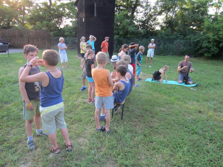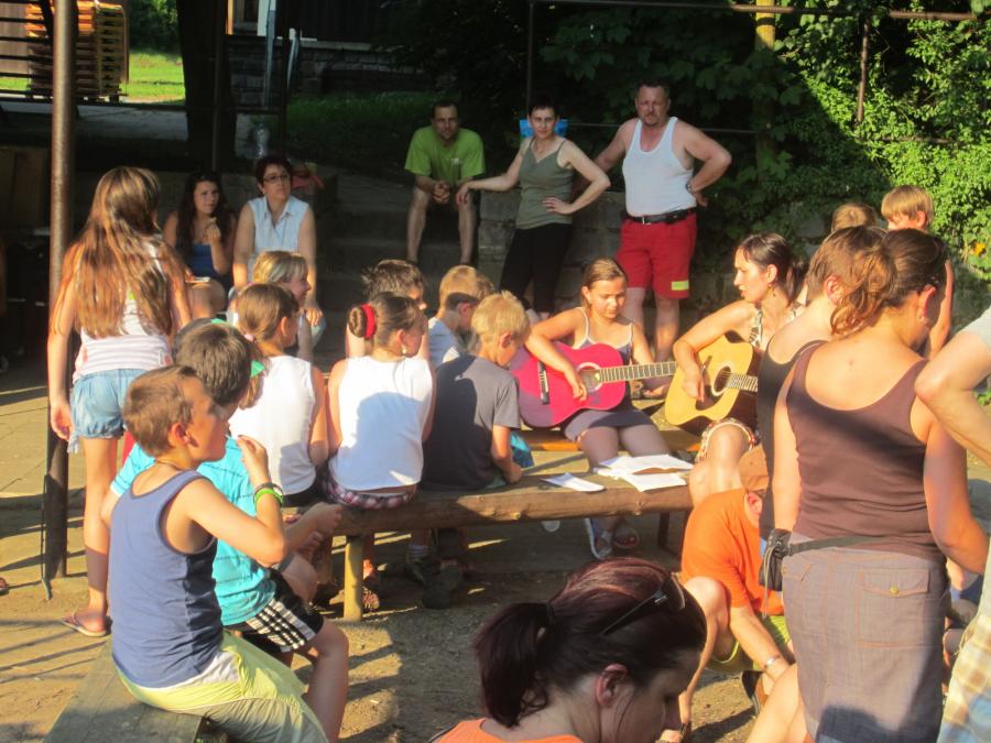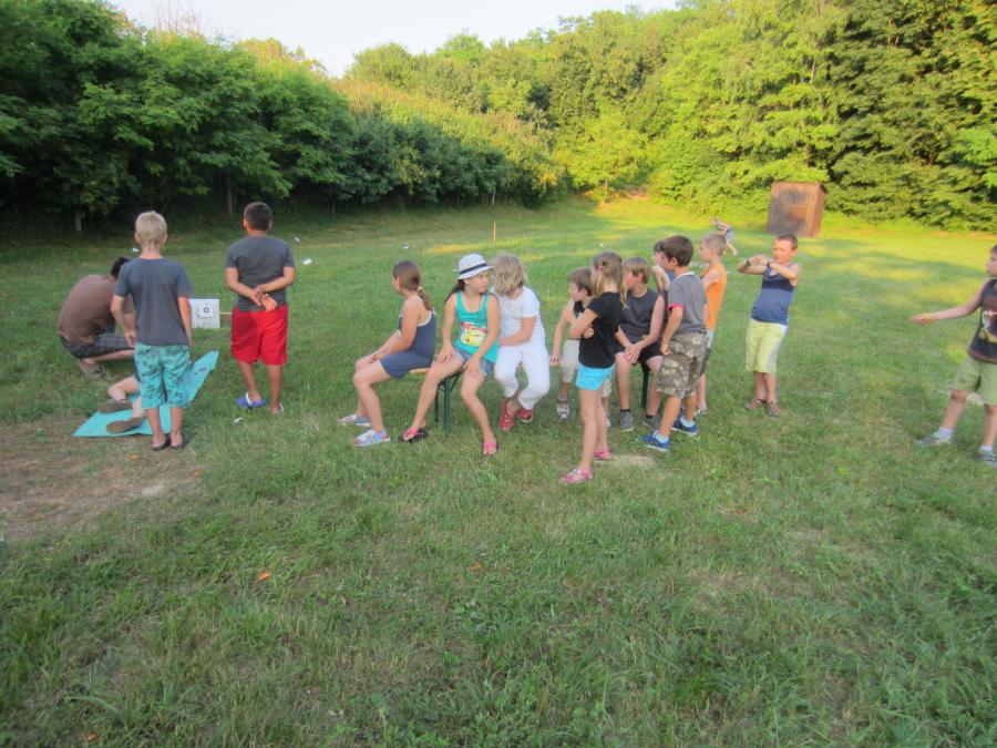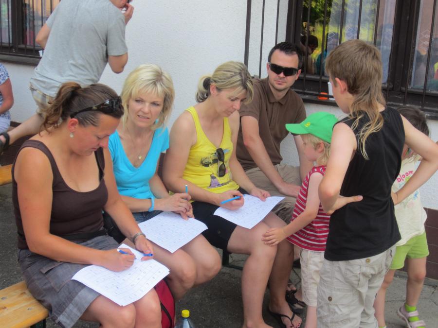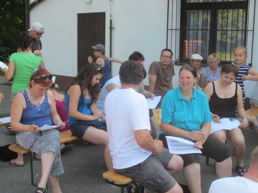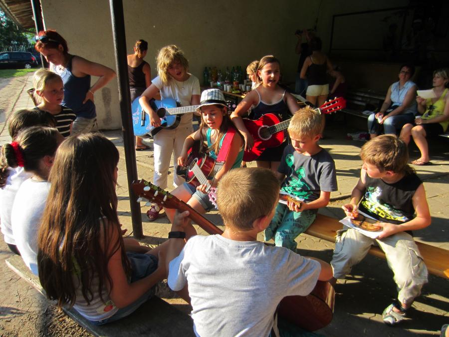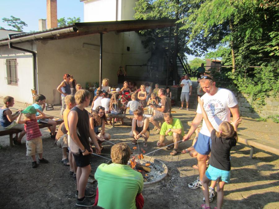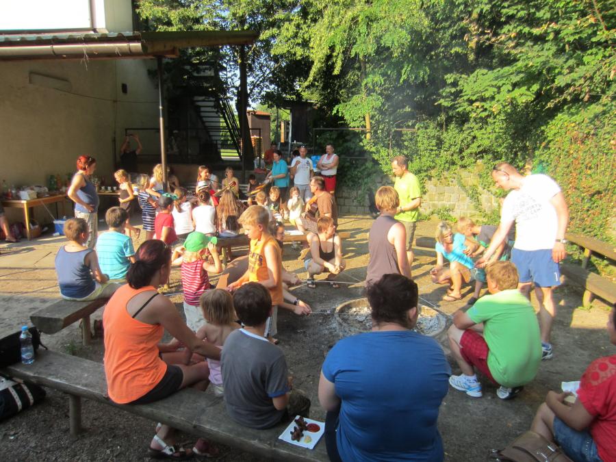 Divadlem jsme zahájili program. Rodiče byli nadšeni, hra měla veliký úspěch. Pokračovali jsme společnou hrou dětí a jejich rodičů. Měli za úkol vylušti šifru, ve které byl ukryt nádherný, srdce i duši potěšující citát a poskládat rozstříhaný obrázek, podle kterého zjistili autora citátu – Jana Ámose Komenského. Dále následovalo opékání špekáčků doprovázené zpěvem a hudebním doprovodem pěti kytar. Zazpívali jsme písničky, které se děti naučily během celé čtvrté třídy. Výborné bylo i ostatní pohoštění, např. velké obložené tácy s ovocem od Martina Kocourka, vlastnoručně usmažené palačinky od Michala Dobruckého a Ondřeje Banka,… Poslední v programu bylo střílení ze vzduchovky na terč.