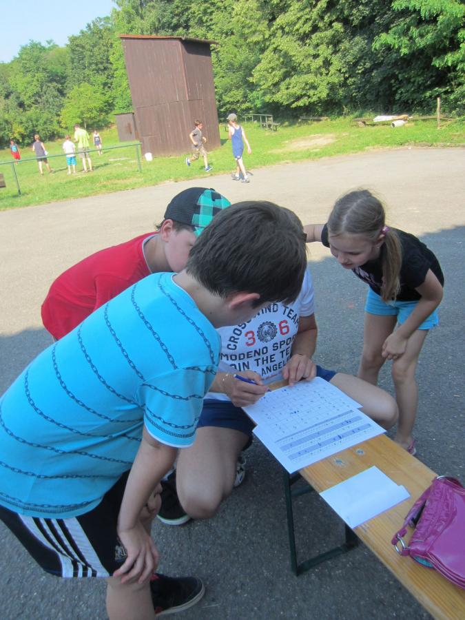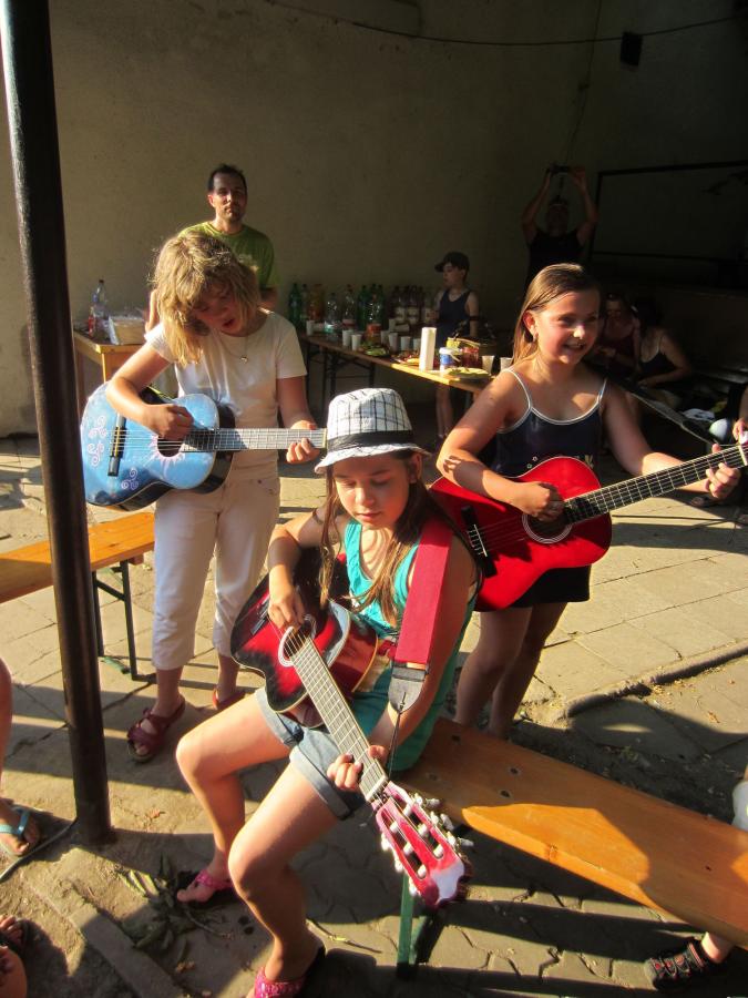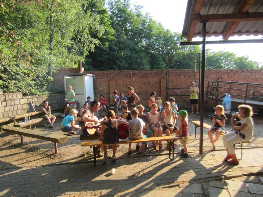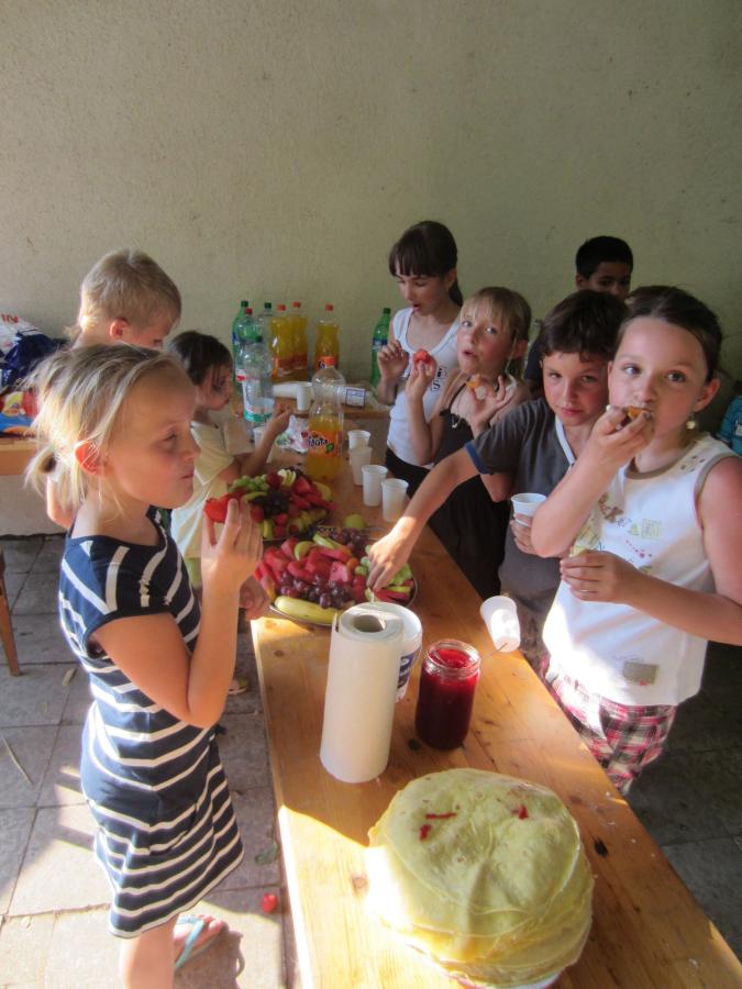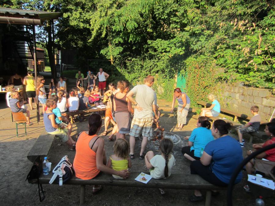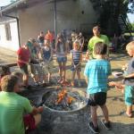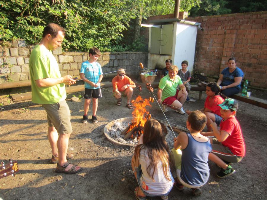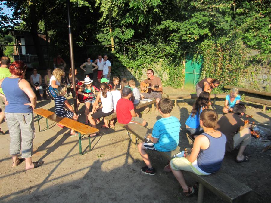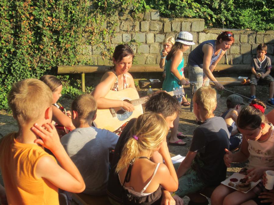 Divadlem jsme zahájili program. Rodiče byli nadšeni, hra měla veliký úspěch. Pokračovali jsme společnou hrou dětí a jejich rodičů. Měli za úkol vylušti šifru, ve které byl ukryt nádherný, srdce i duši potěšující citát a poskládat rozstříhaný obrázek, podle kterého zjistili autora citátu – Jana Ámose Komenského. Dále následovalo opékání špekáčků doprovázené zpěvem a hudebním doprovodem pěti kytar. Zazpívali jsme písničky, které se děti naučily během celé čtvrté třídy. Výborné bylo i ostatní pohoštění, např. velké obložené tácy s ovocem od Martina Kocourka, vlastnoručně usmažené palačinky od Michala Dobruckého a Ondřeje Banka,… Poslední v programu bylo střílení ze vzduchovky na terč.