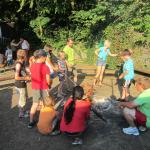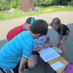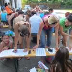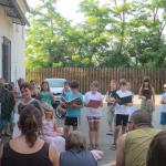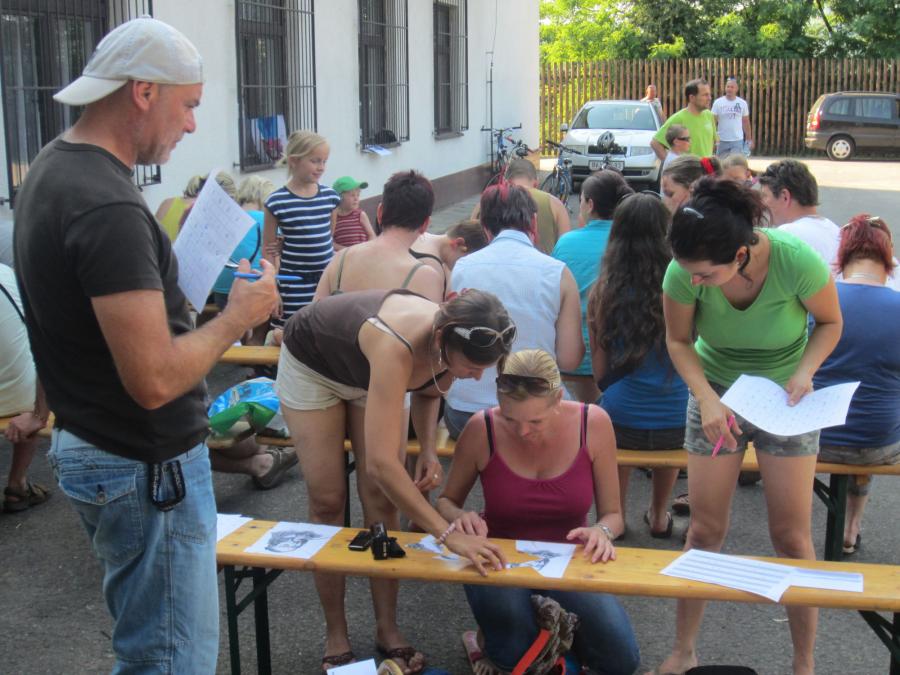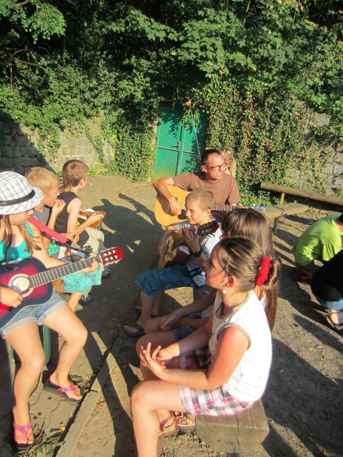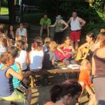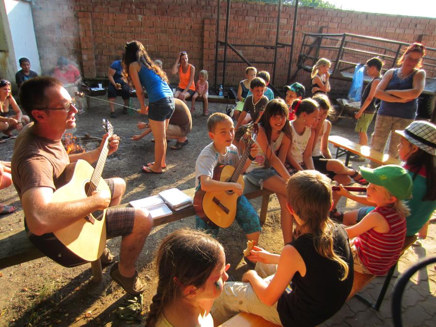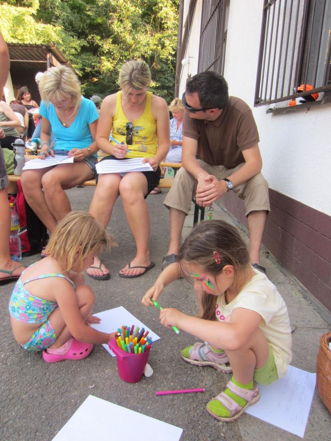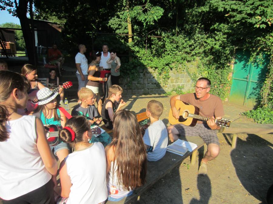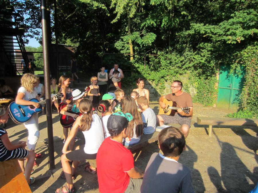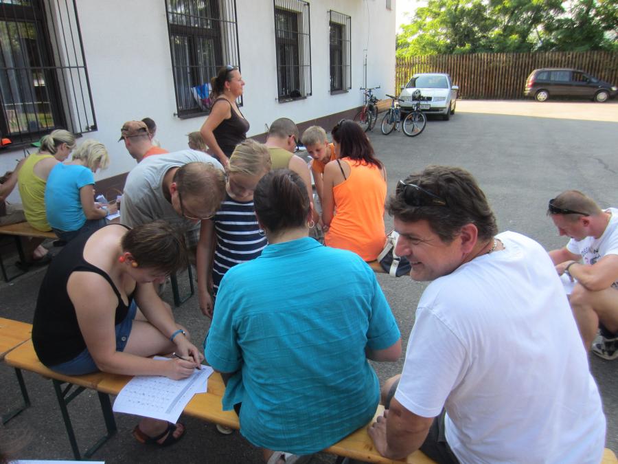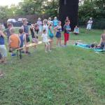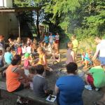 Divadlem jsme zahájili program. Rodiče byli nadšeni, hra měla veliký úspěch. Pokračovali jsme společnou hrou dětí a jejich rodičů. Měli za úkol vylušti šifru, ve které byl ukryt nádherný, srdce i duši potěšující citát a poskládat rozstříhaný obrázek, podle kterého zjistili autora citátu – Jana Ámose Komenského. Dále následovalo opékání špekáčků doprovázené zpěvem a hudebním doprovodem pěti kytar. Zazpívali jsme písničky, které se děti naučily během celé čtvrté třídy. Výborné bylo i ostatní pohoštění, např. velké obložené tácy s ovocem od Martina Kocourka, vlastnoručně usmažené palačinky od Michala Dobruckého a Ondřeje Banka,… Poslední v programu bylo střílení ze vzduchovky na terč.