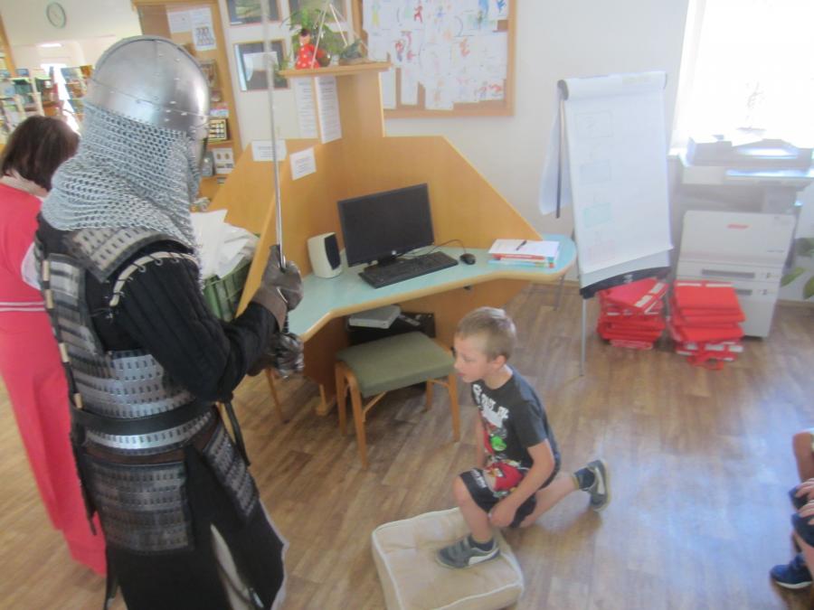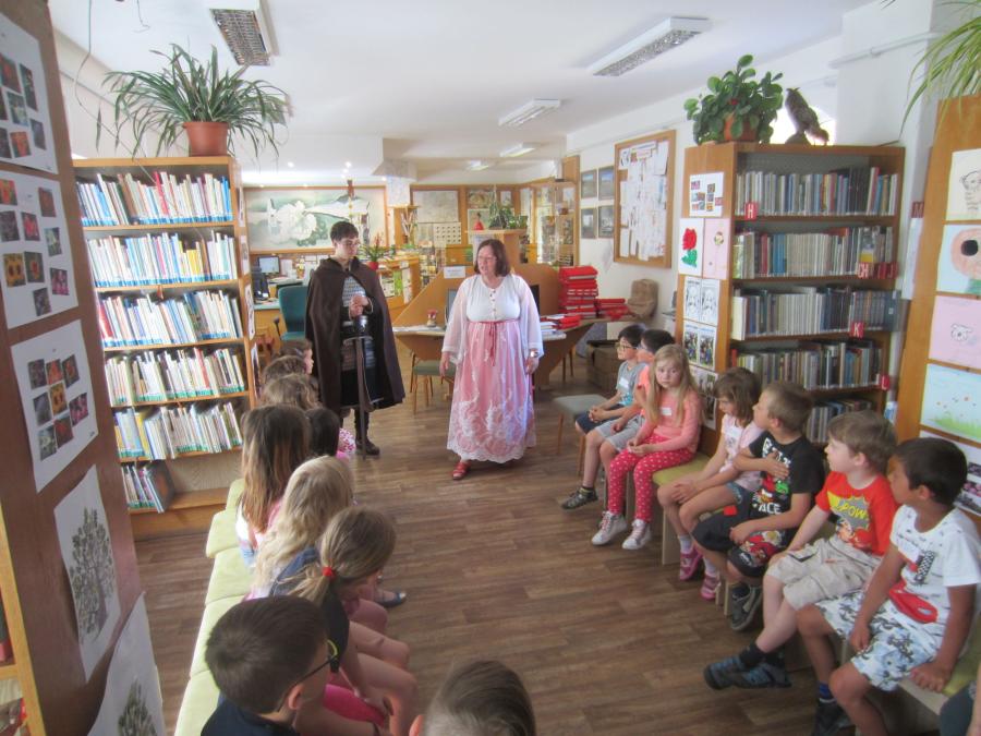 Na úvod děti předvedly, co se již stačily v první třídě naučit. Poté byly pasovány na čtenáře a složily čtenářský slib, ve kterém slíbily, že budou ochraňovat knížky a statečně a čestně, jako praví rytíři, se budou bít za všechno dobré, co je v knížkách napsáno. Z rukou paní knihovnice Mgr. Dany Růžičkové dostaly svůj první průkaz do knihovny. Nově pasování čtenáři teď již mohou stejně jako jejich starší kamarádi navštěvovat království knih v dětském oddělení knihovny, kde si mohou knihy sami nebo s pomocí paní knihovnice vybírat. Všichni jsou i s rodiči do knihovny srdečně zváni!
