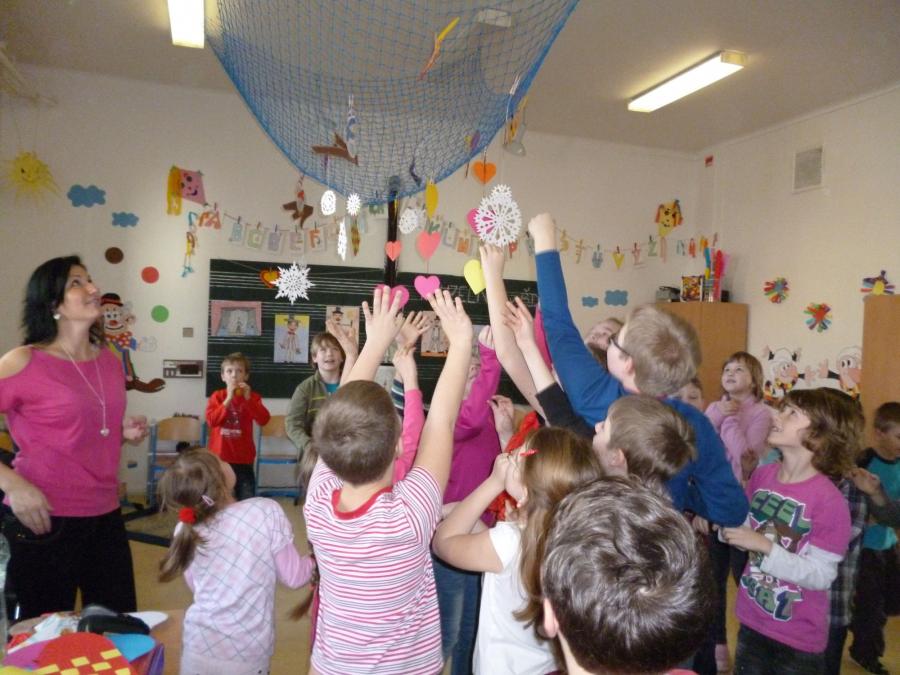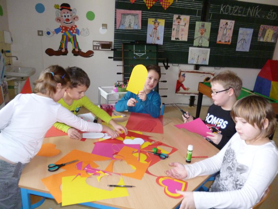 Během celého týdne jsme ve školní družině při ZŠ Velké Pavlovice tvořili s dětmi barevná papírová srdíčka a drobná přáníčka k svátku sv. Valentýna.  Tvůrčí týden byl v pátek završen veselou valentýnskou diskotéku. V srdíčky vyzdobené družině se děti  za zvuku disco hudby vyřádily
