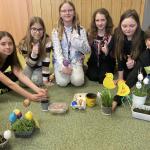 Další zábavnou a oblíbenou aktivitou bylo vytváření velikonočních dekorací. Velikonoční kuřátka, ptáčky, ovečky a zajíčky tvořily děti z papíru, lepenky i jiných materiálů. Ve Velikonočních dílnách vznikaly pestré věnce s vajíčky a květinami, velikonoční košíčky s kuřátky. Školáci si mohli také nazdobit květináče s jarním osením, které si ve škole vypěstovali. Všechny tyto činnosti jsou zároveň příležitostí k rozvoji jemné motoriky a kreativity našich dětí. Věříme, že výrobky potěší děti i jejich rodiče.