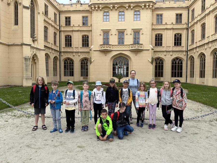 8.června 2023 jsme jeli autobusem do Lednice. Byli jsme na prohlídce na zámku a viděli jsme loutky. Plavili jsem se k minaretu lodí a viděli jsme želvu a keramické žáby. U minaretu jsme si koupili jídlo a pití. Nazpátek jsme šli parkem a začalo pršet. Tak jsme šli přečkat bouřku do jízdárny. A při té příležitosti jsme si koupili suvenýry. Paní učitelky zjistily, že bude ještě hodinu pršet, tak jsme utíkali k autobusu. Konec – zvonec.