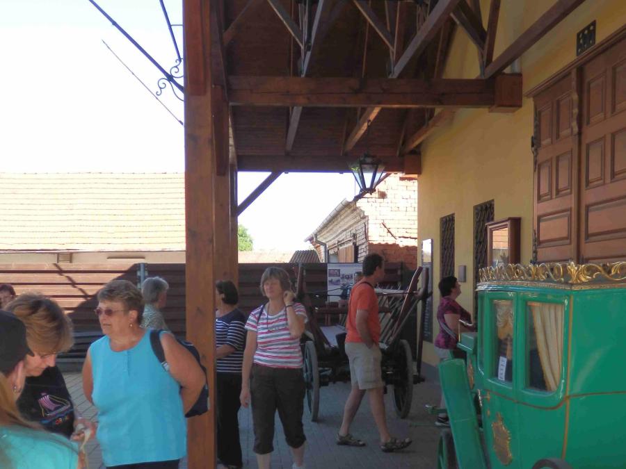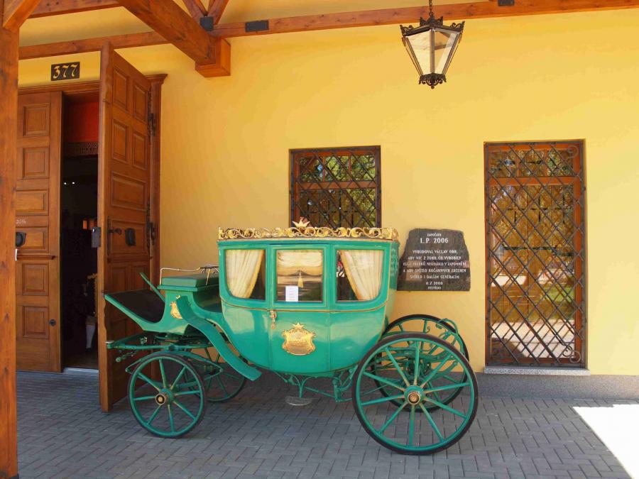 Naše putování začalo návštěvou muzea kočárů v Čechách pod Košířem, které zde bylo vybudováno až v roce 2009 p. Václavem Obrem. Zde jsou vystaveny historické kočary, který právě p. Obra nedříve sbíral a rekonstruoval. V první expozici byly shromážděny exponáty historických kočárů, ke kterým nám náš průvodce vždy sdělil jejich příběh. Mnohé se používají i v dnešní době. Filmaři si je vybírají do svých filmů jako plně funkční rekvizity. Druhé expozici vévodí jeden smuteční kočár, jeden z největších v Evropě. Je to pravý skvost a naše paní průvodkyně jeho výkladem historie, rekonstrukce a opravou některých detailů se zabývala skoro hodinu. Doplnění této části prohlídky byly expozice sáněk.