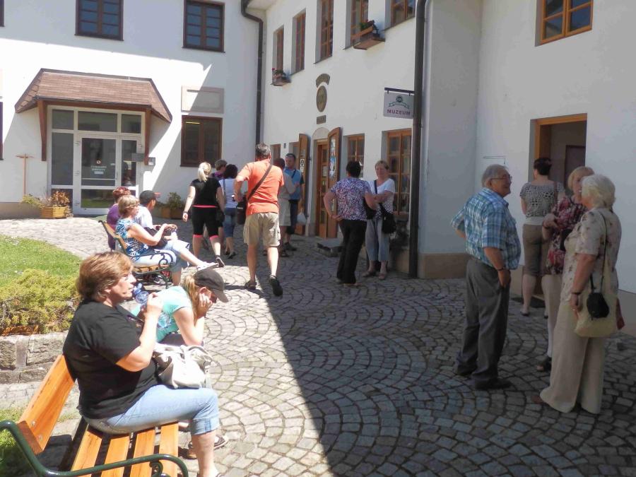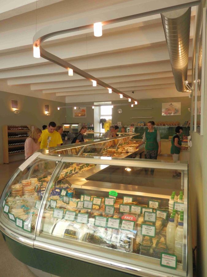 Po rohlídce jsme směřovali do Loštic, které jsou známé výrobou pravých syrečků. Zde jsme se rozdělili na 2 skupiny, protože muzeum je umístěno ve velice malých prostorách. Shlédli jsme historické exponáty při výrobě tvarůžků a uviděli filmové zpracování výroby . Prohlídka byla zakončena návštěvou podnikové prodejny a každý účastník zájezdu odcházel s nákupem vzorků této dobré pochutiny. Vůně tvarůžků zaplnila náš autobus.