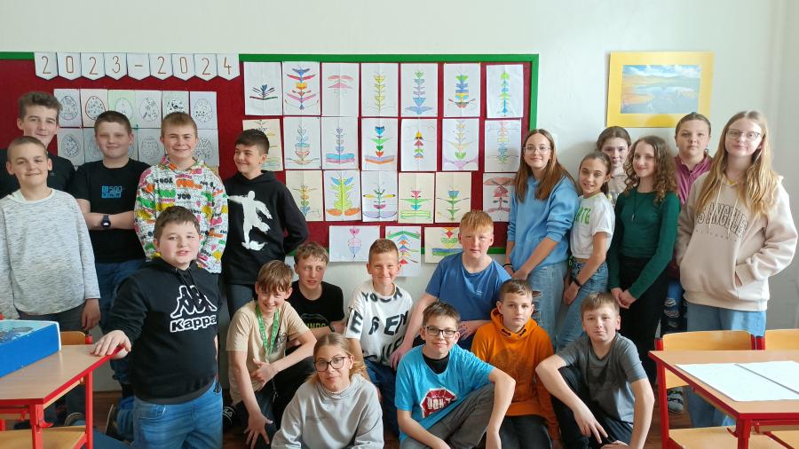 Žáci šestého ročníku v hodinách matematiky probírali osovou souměrnost. Učivo si vyzkoušeli a procvičili i ve výtvarné výchově. Každý si ze svého jména vytvořil mimozemšťana, ke kterému přidal i krátký popis.