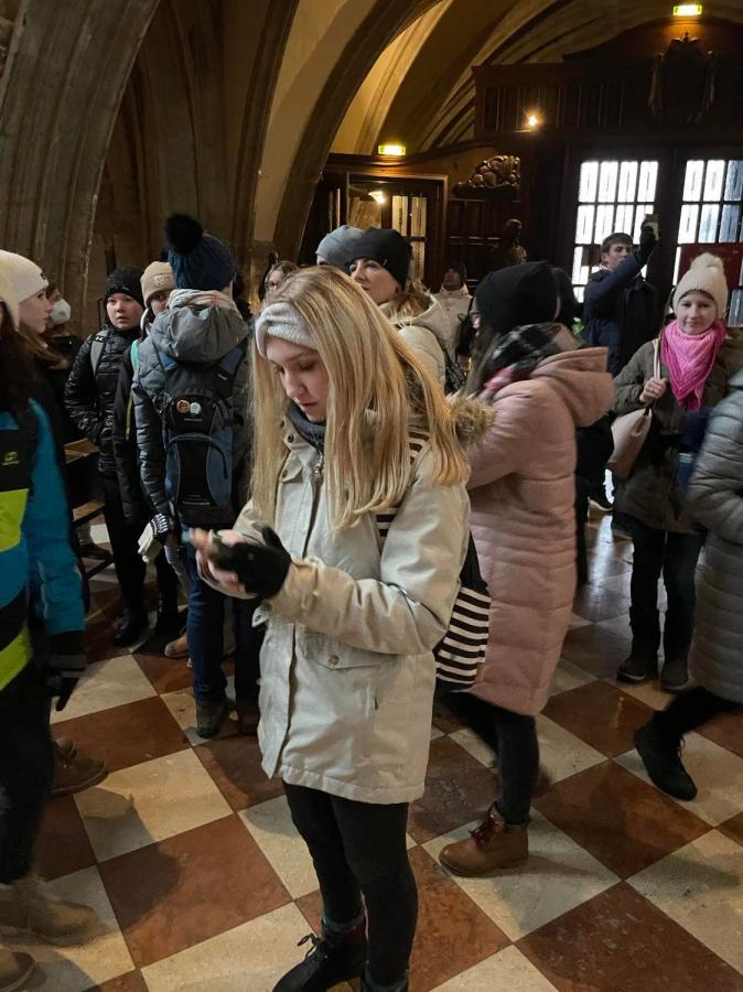 V úterý 20. prosince se třídy 8.A, 8.B a 9.A vydaly do Vídně na vánoční trhy. Ve Vídni byla zima, ale i vánoční nálada. Prošli jsme si různé velmi krásně nazdobené a nasvícené trhy. Zkoušeli jsme mluvit německy i anglicky. Viděli jsme různé stánky, které nabízely mnoho vánočního zboží i tradičních předvánočních pokrmů. Většina z nás si koupila tradiční čaj v hrnkách. Byli jsme se podívat i ve vídeňské katedrále. Byl to vydařený den, výlet se nám moc líbil.