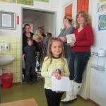 Zatímco maminky a tatínkové budoucích prvňáčků sepisovali všechny potřebné administrativní údaje, děti plnily rozmanité úkoly: kreslily obrázek, recitovaly básničky, počítaly, třídily obrázky, písmena a barvy. Tyto aktivity jsou klasickým testem školní zralosti. Na základě výsledků pak škola rozhoduje o přijetí žáka do první třídy, nebo může rodičům doporučit odklad školní docházky jejich dítěte. Budoucí školáčci dostali dárečky od žáků pátých ročníků a pamětní list, který jim bude tento slavnostní den připomínat. Všechny děti za jejich výkony moc chválíme a těšíme se na ně v příštím školním roce.