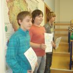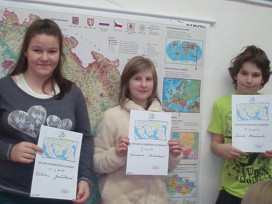 Zájemci o zeměpis změřili své znalosti v zeměpisné olympiádě. Soutěž proběhla ve dvou kategoriích- kategorie A- 6. třída a kategorie B- 7. třída. Celkem 26 žáků si vyzkoušelo práci s turistickou mapou a test zeměpisných znalostí. V případě kategorie A se většina otázek týkala vesmíru a stavby Země, v kategorii B byli žáci dotazování na témata spojená s kontinenty Afrika, Amerika a Austrálie. Nejšikovnější z obou kategorií postupují do okresního kola v Břeclavi, které se bude konat 25. 2. 2014.
