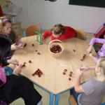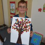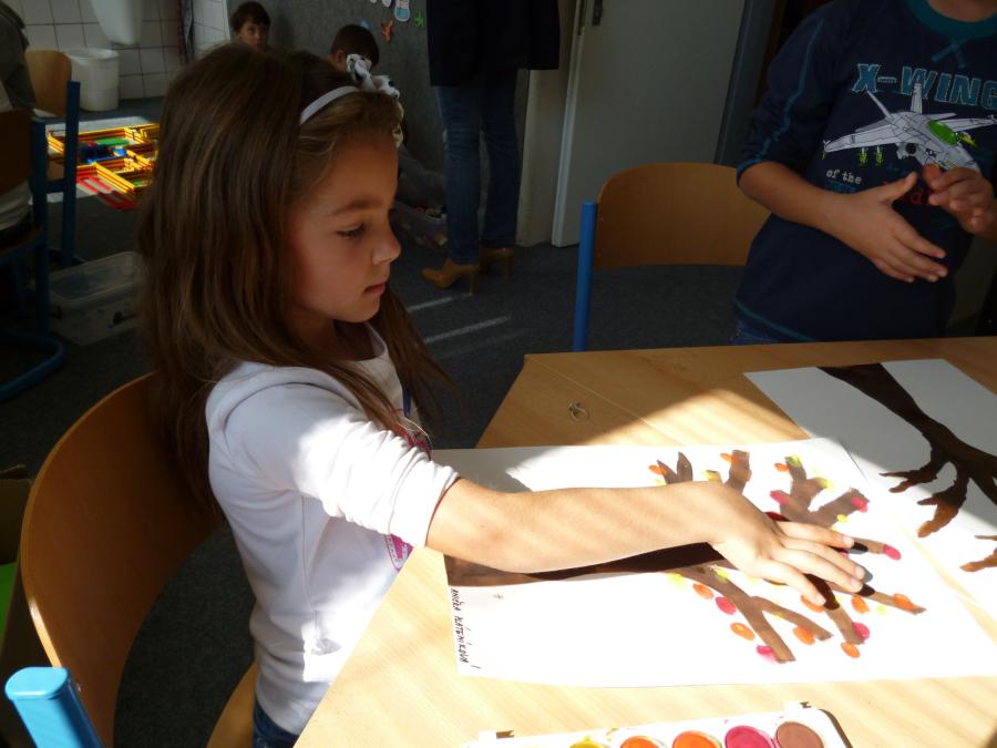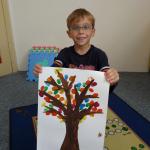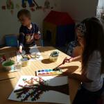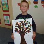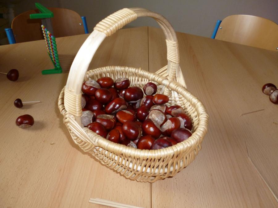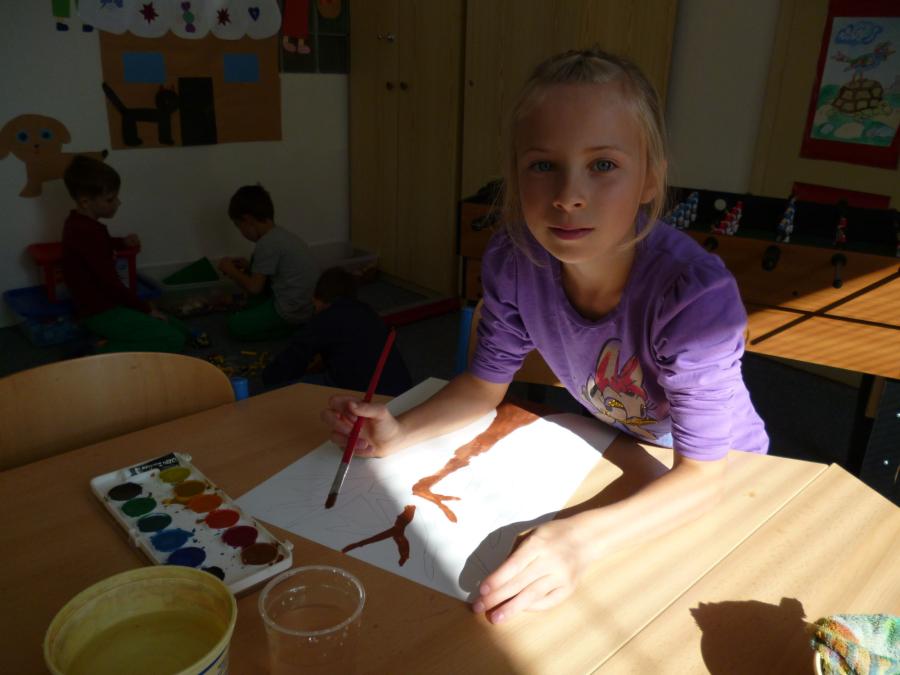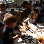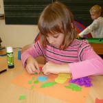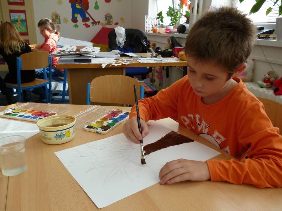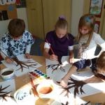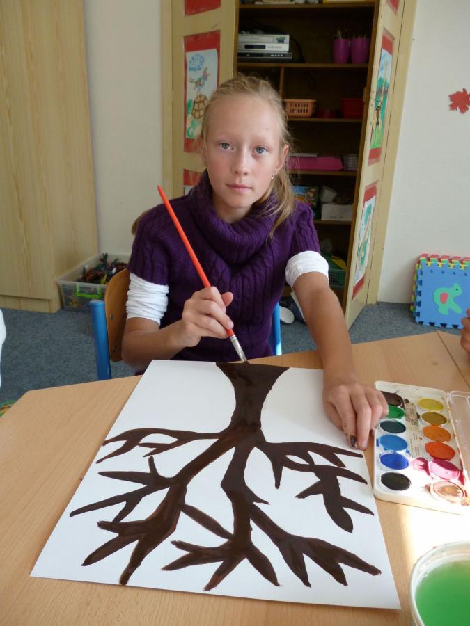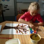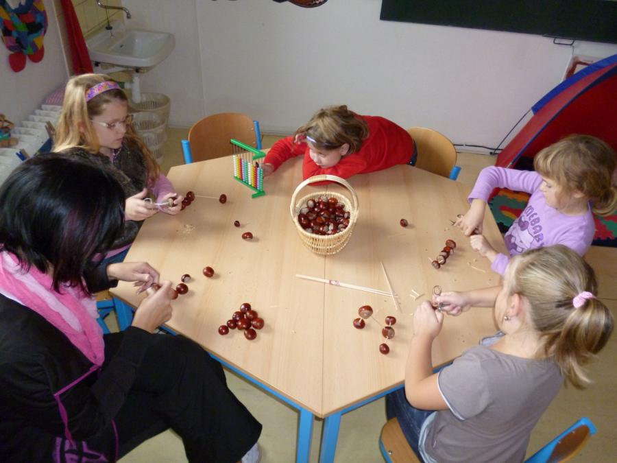 Četba s motivy podzimního času nás inspirovala k výrobě drobných postaviček z kaštanů a malbě pestrého podzimního stromu.