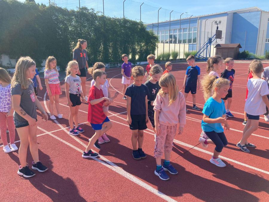 Tělesná výchova v prvních třídách s trenérkou ledního hokeje