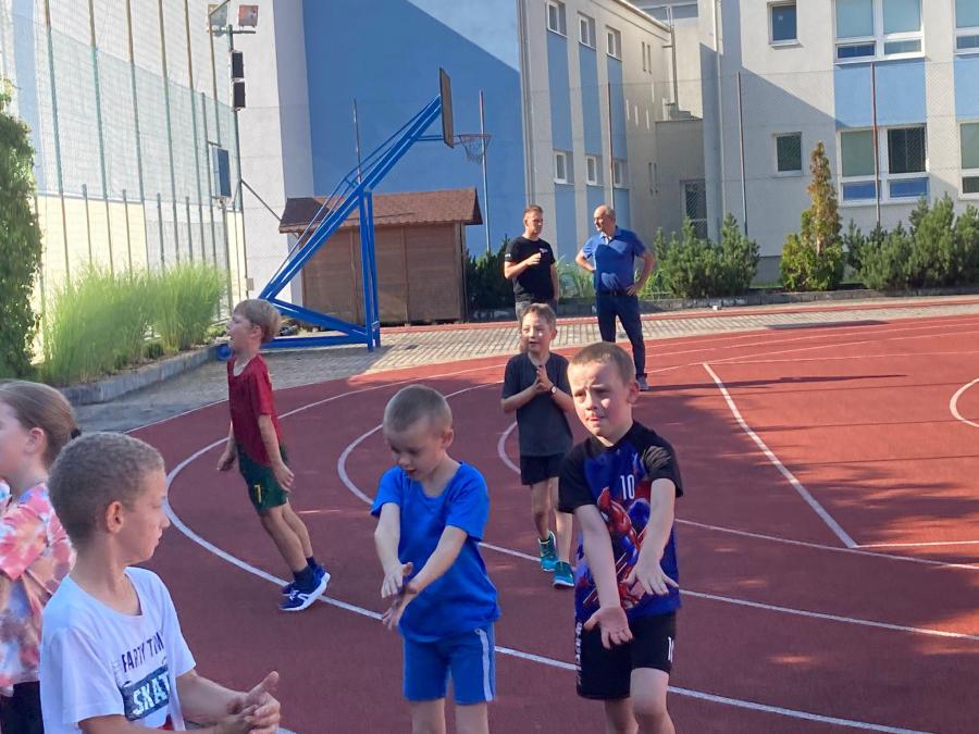 Tělesná výchova v prvních třídách s trenérkou ledního hokeje